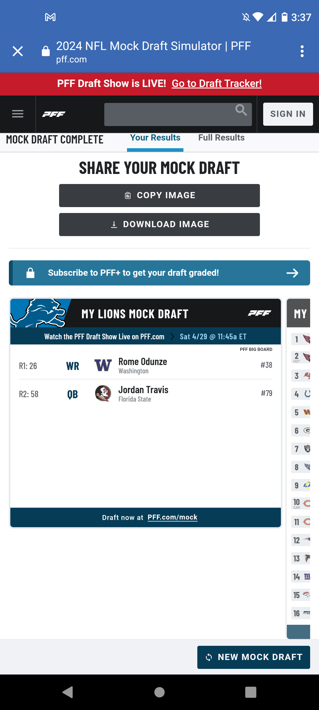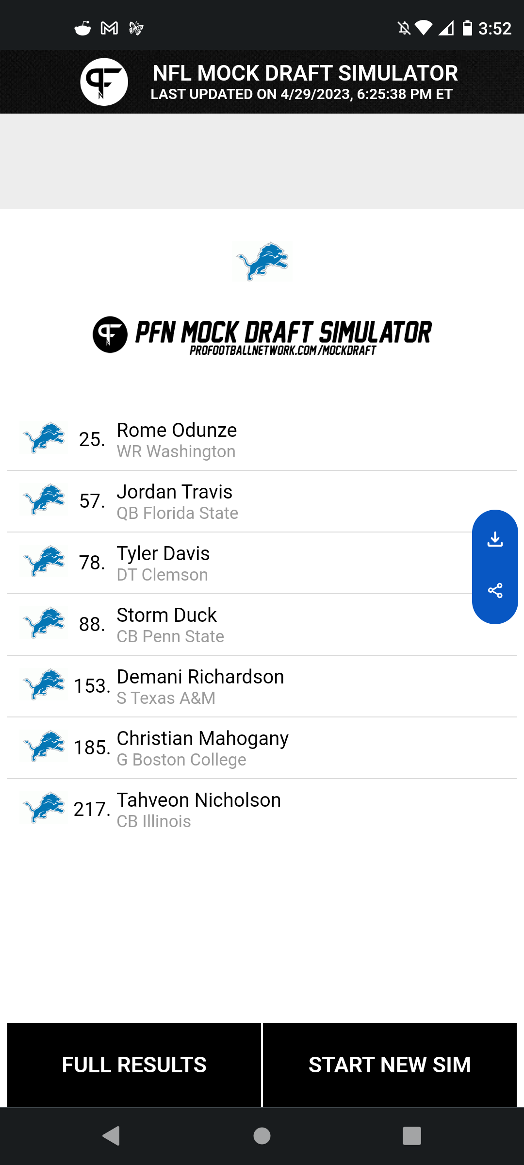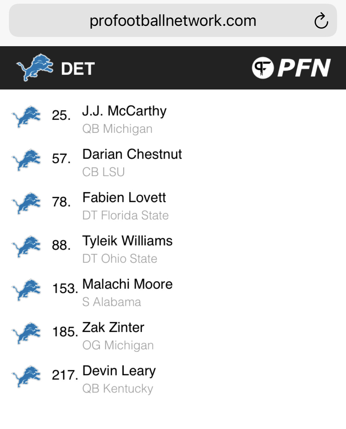 Charlie Campbell has the Lions picking at 29!!!
