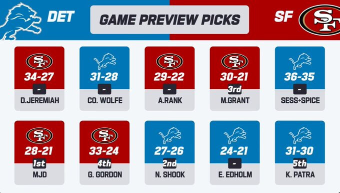 Pick: 49ers 34, Lions 31
