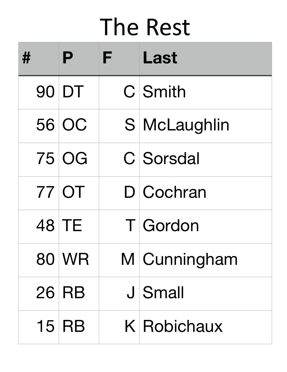 You could argue that if we are starting Harper and Jackson we are dead. Kirby may be a bench player for the year if that. I would add at least one safety to the starters. Maybe a vet on a 1 year deal just to allow for some recovery.