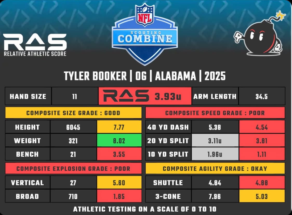 For the record, that will be the lowest RAS of an OL drafted in the 1st round this century. Do you want to bet on that kind of outlier?