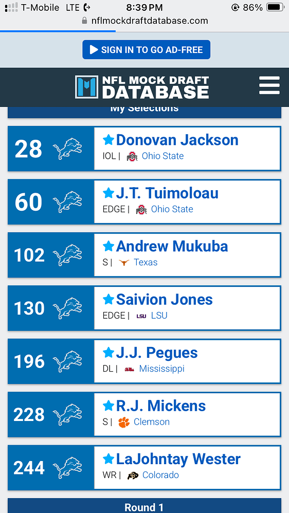 Agreed sample size is waaay to small to count on Mahogany being a stud at this point. We need another guard this draft as insurance especially with the loss of Zeitler and GG on his last leg. O LINE is our bread and butter folks.
