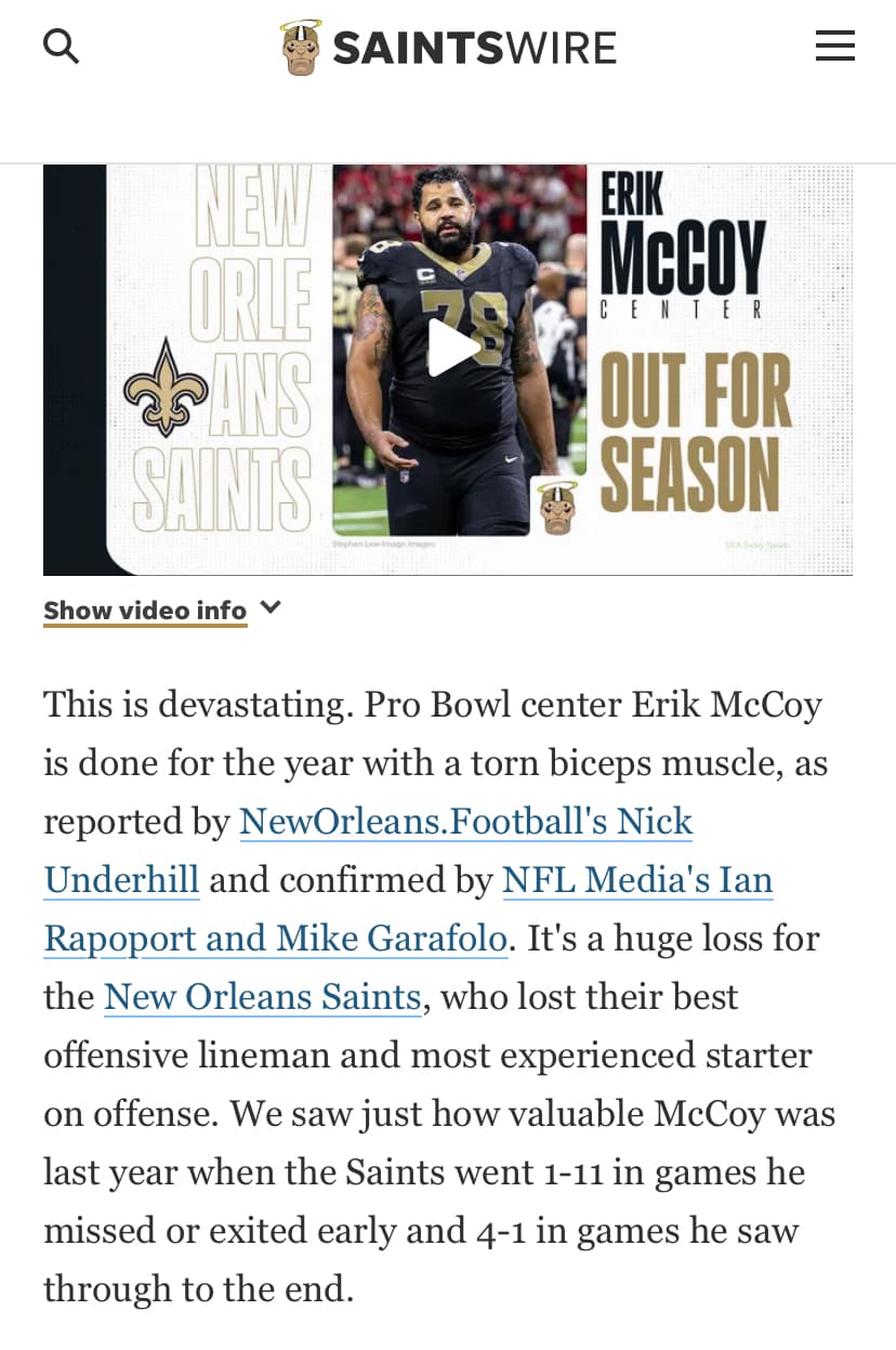 I would be really surprised if Linderbaum becomes available, but the Ravens have been pretty cutthroat through the years. Another guy I like is Erik McCoy. Actually when healthy I think he’s even more well-rounded than Linderbaum. BUT he’s coming off an ACL tear, and the Saints have never admitted they need to start over so whether he becomes available or not is up in the air. Dan has history with him though, and they share an alma mater.