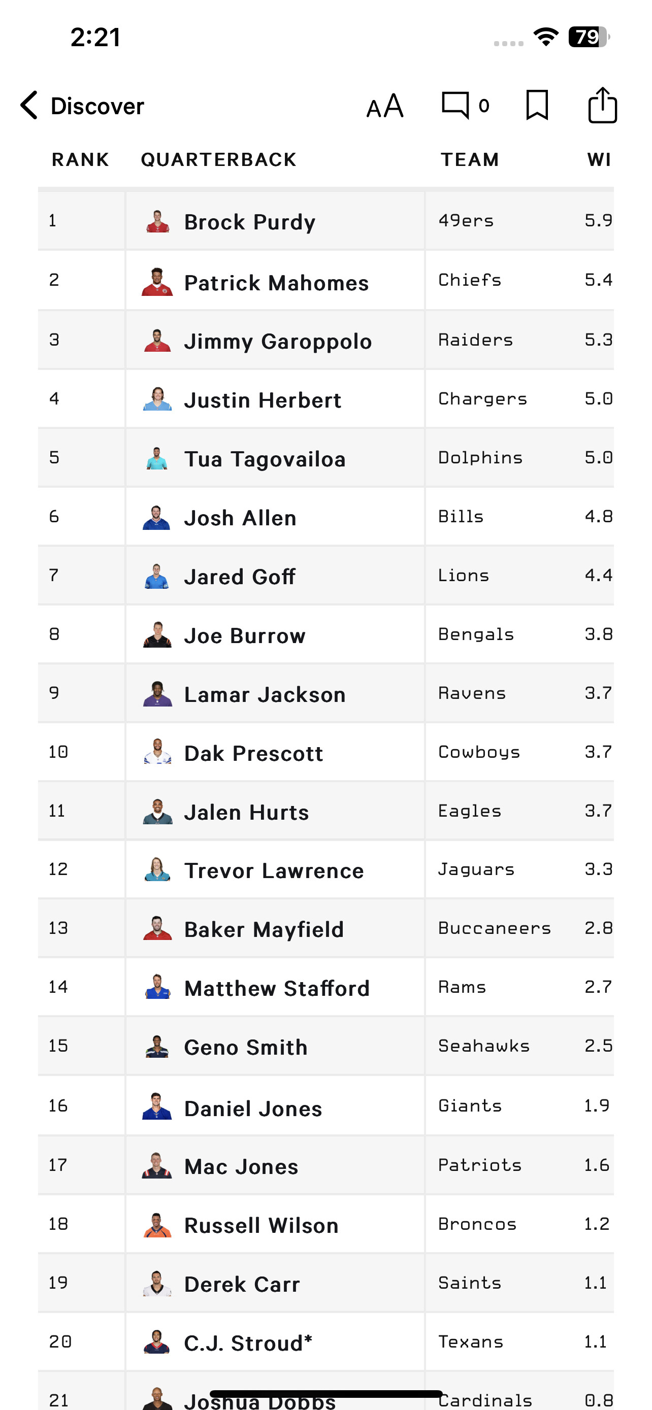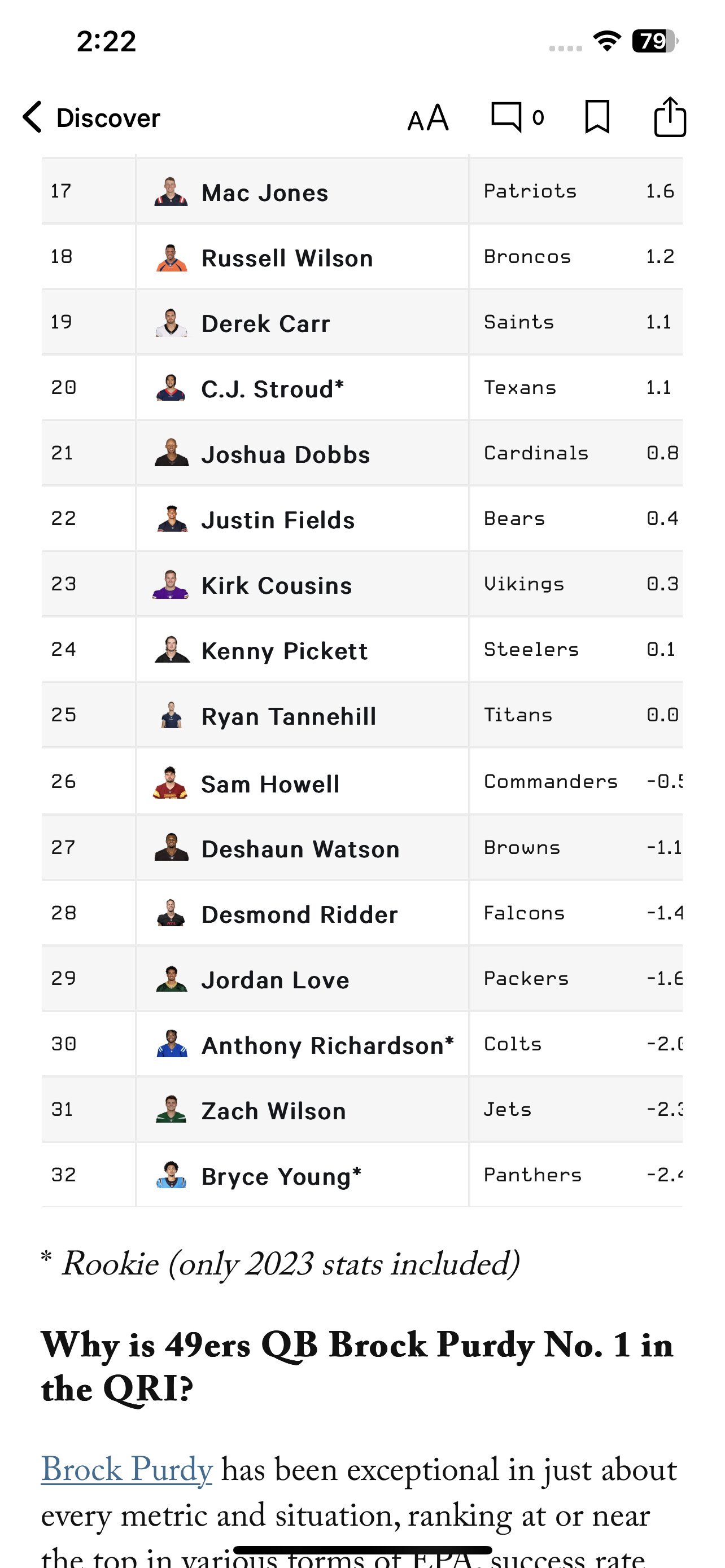 For a more thorough evaluation, the index includes data from all games since the start of the 2022 season (for applicable players) with recent games weighted more heavily. Until more games are played, rookies and newer starters have smaller sample sizes and will be more susceptible to bigger swings. We’re solely including this season’s primary starting quarterbacks for a cleaner 1-to-32 ranking.