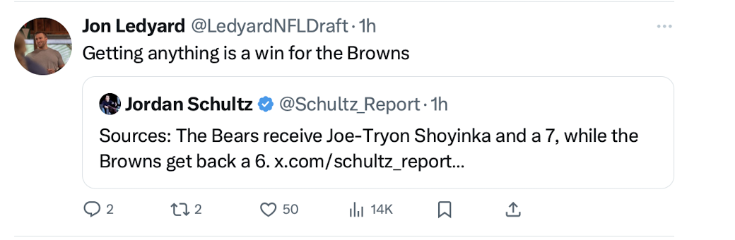 Clickbait fail. Should’ve been, “Bears acquire DE from Cleveland!” Cost my ass 1.5 lattes. Damn.