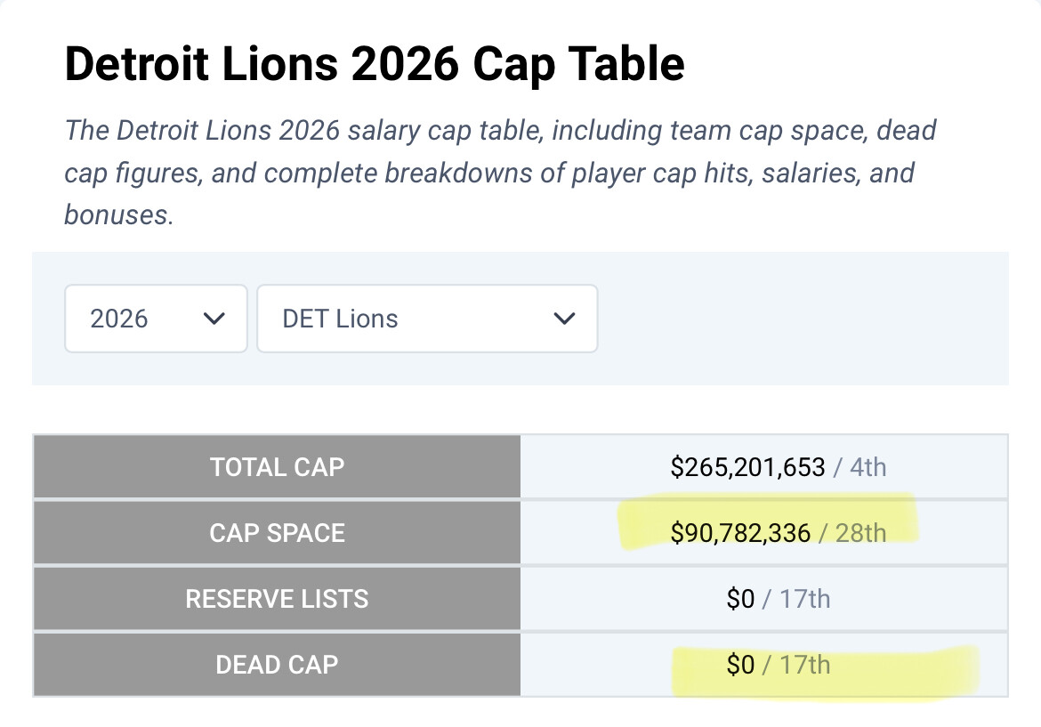 Lions aren’t in bad cap shape.