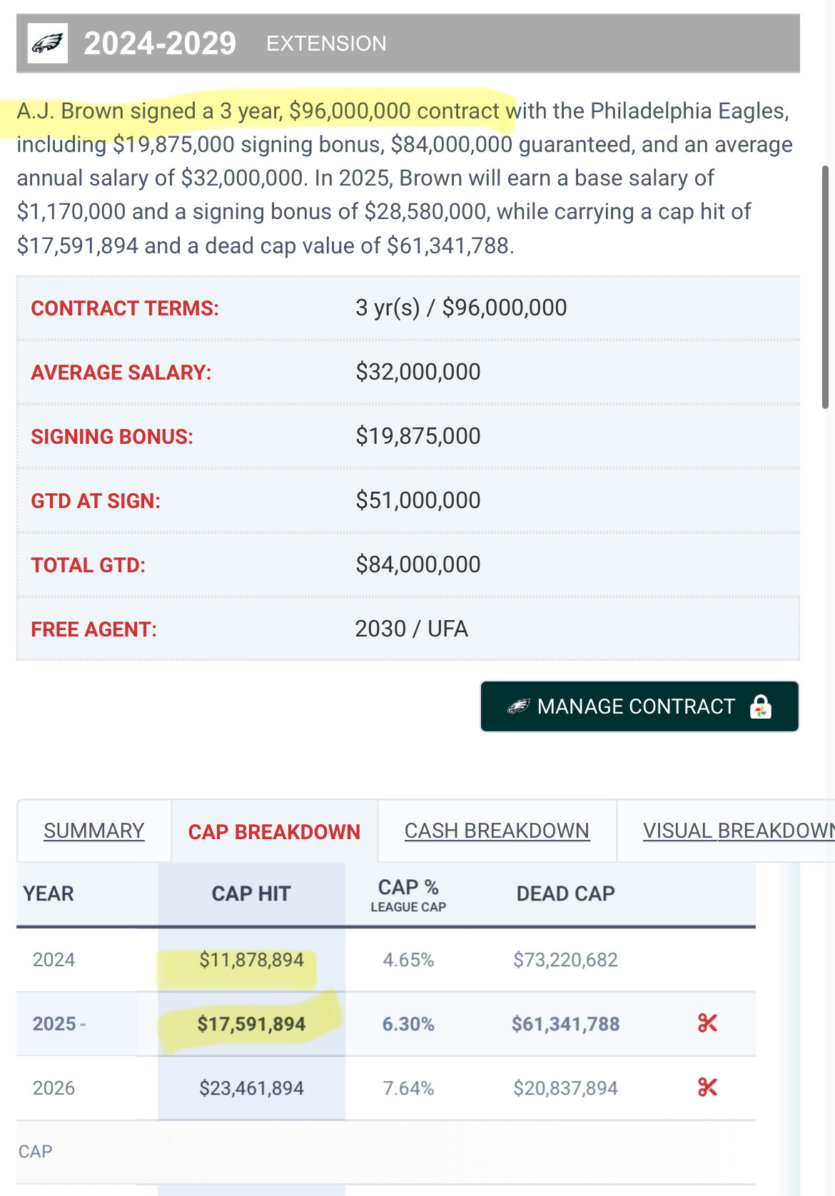 See AJ Brown’s $32 million AAV extension.