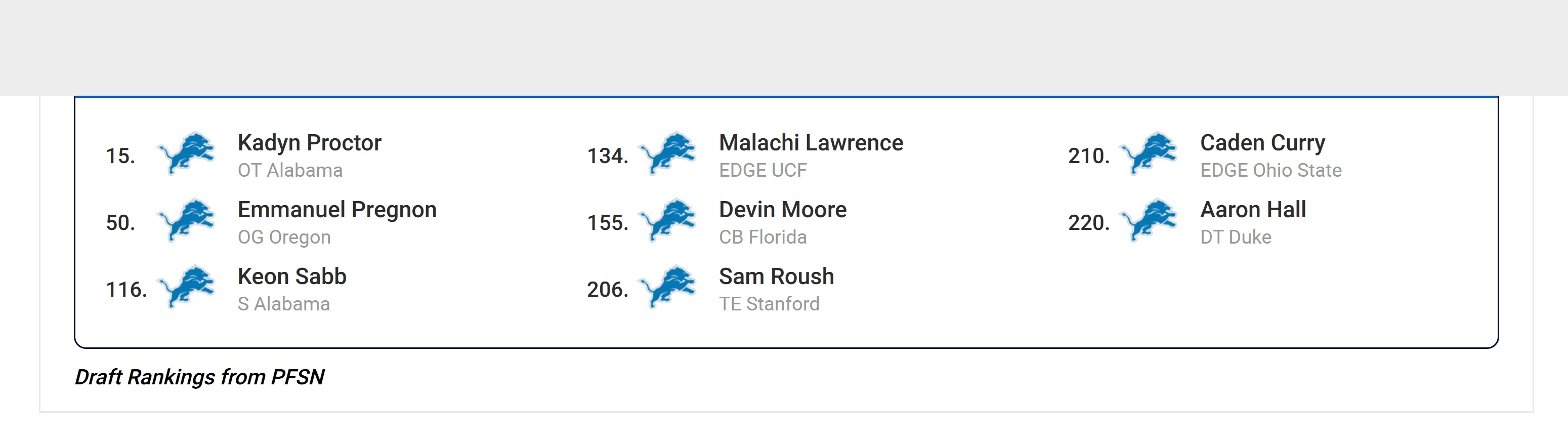 The back half are some players I don’t know much about except Curry. But I think your draft could shore up some issues on the OLine for sure. We could either replace Decker or figure out what to do with both for a year. And Sabb could be fun back there in the secondary.