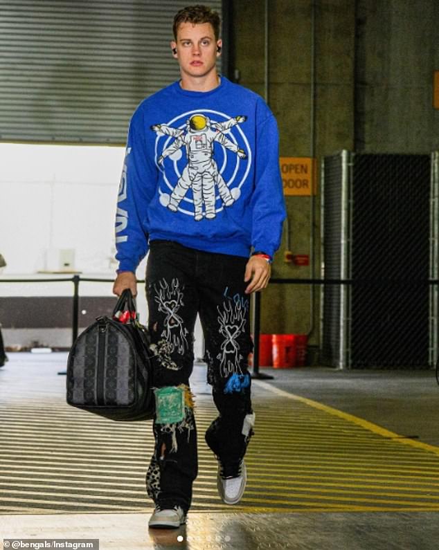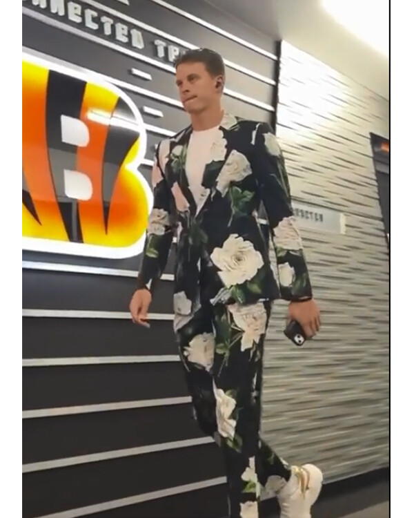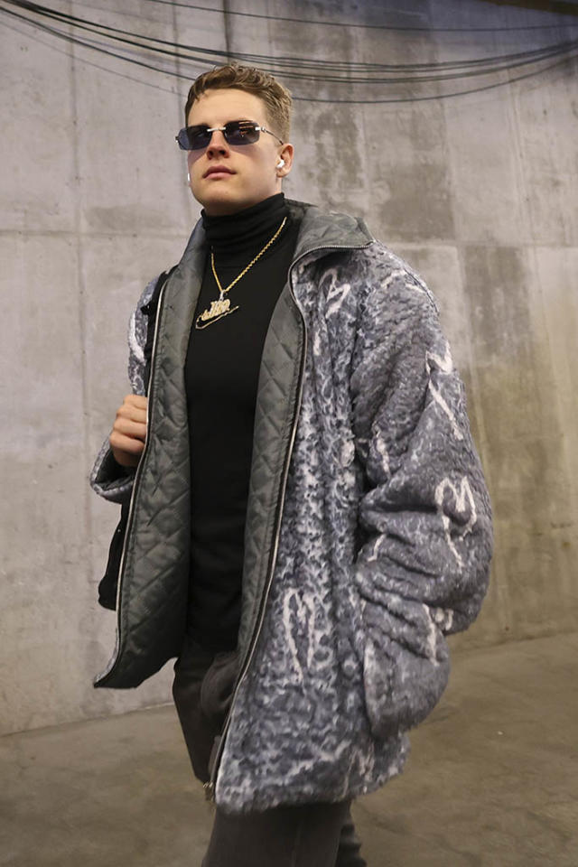 One thing to remember is that Joe Burrow doesnât dress himself for games. He said if it was up to him, he would just wear a plain white T and some pants. But being the cool guy that he is, he lets his receivers pick out clothes for him and tell him what to wear. Sometimes they have a little fun with it. And he goes along with it.