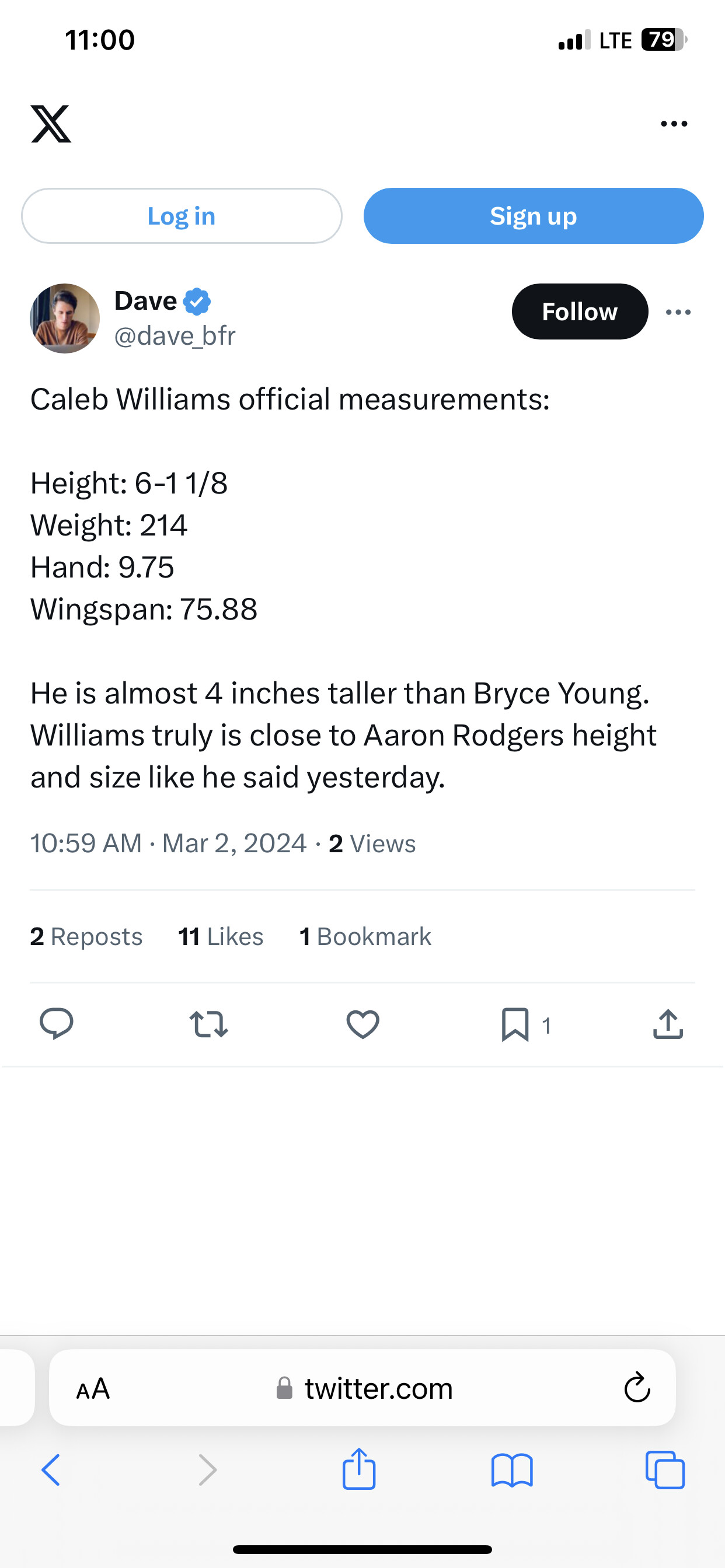 You are not wrong and he will probably be the #1 pick. I wonder if he does the measurements today or if he took off yesterday after his media. I think he is going to kick the can down the road on getting measured tell his pro day. Because he is 6â0â tall