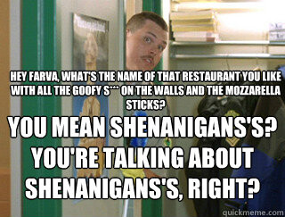 There is actually a place in Portage, Indiana halfway between The Zoo and where my stepdaughter lives called Shenanigans. It’s where we meet to do dog custody exchanges.