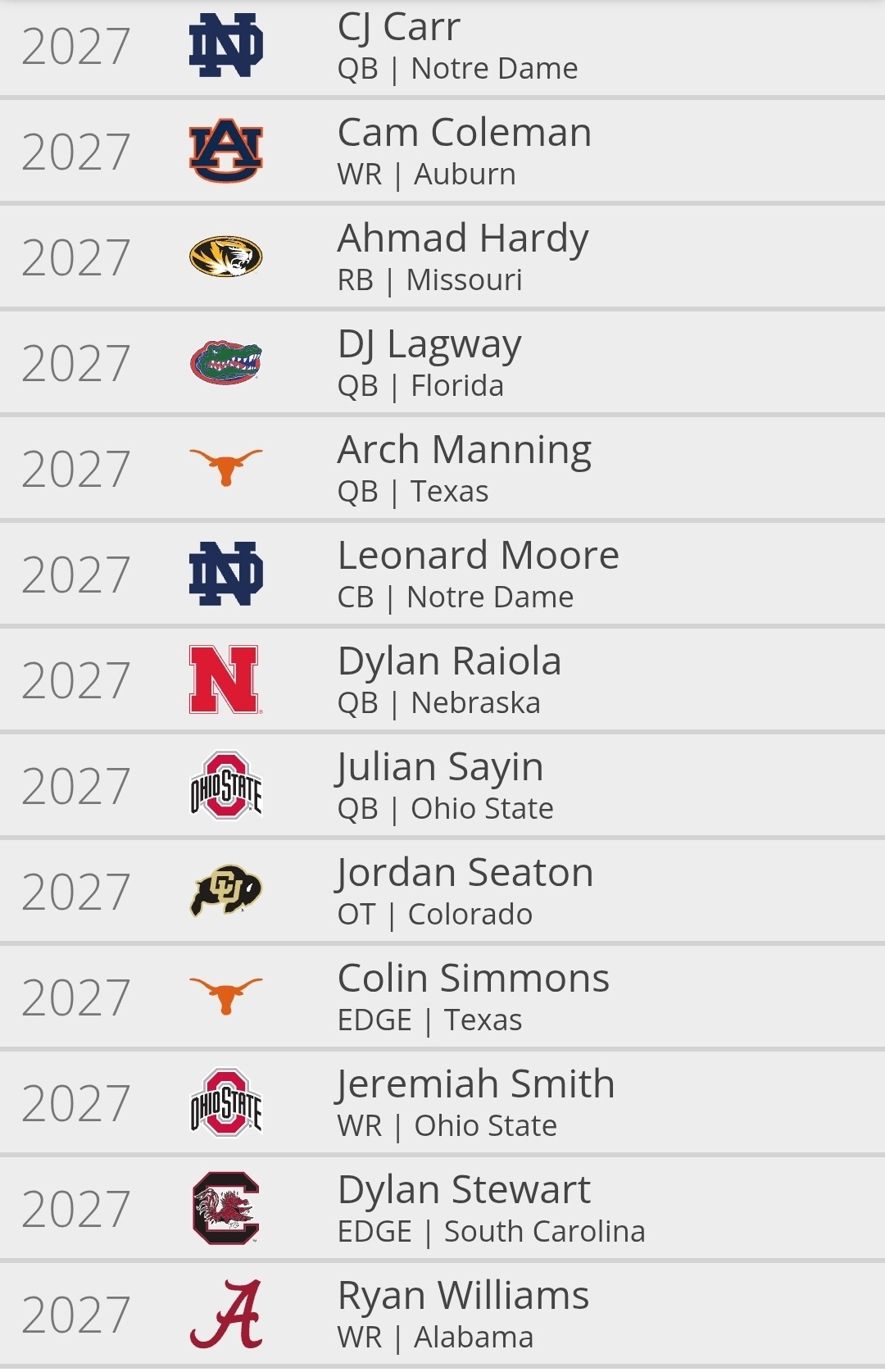 Man, that 2027 class is stacked. Jets could be cooking in a few years if they hit.