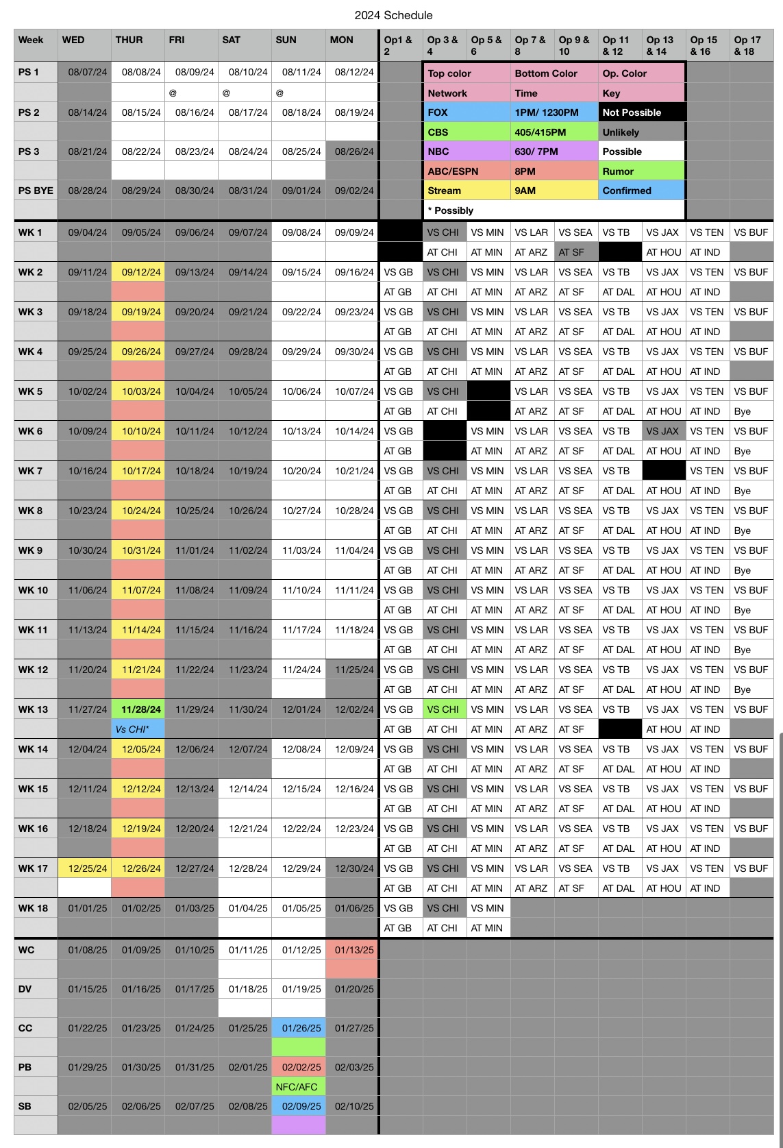 Honestly, would like @ Bears week 1 get that matchup out of the way