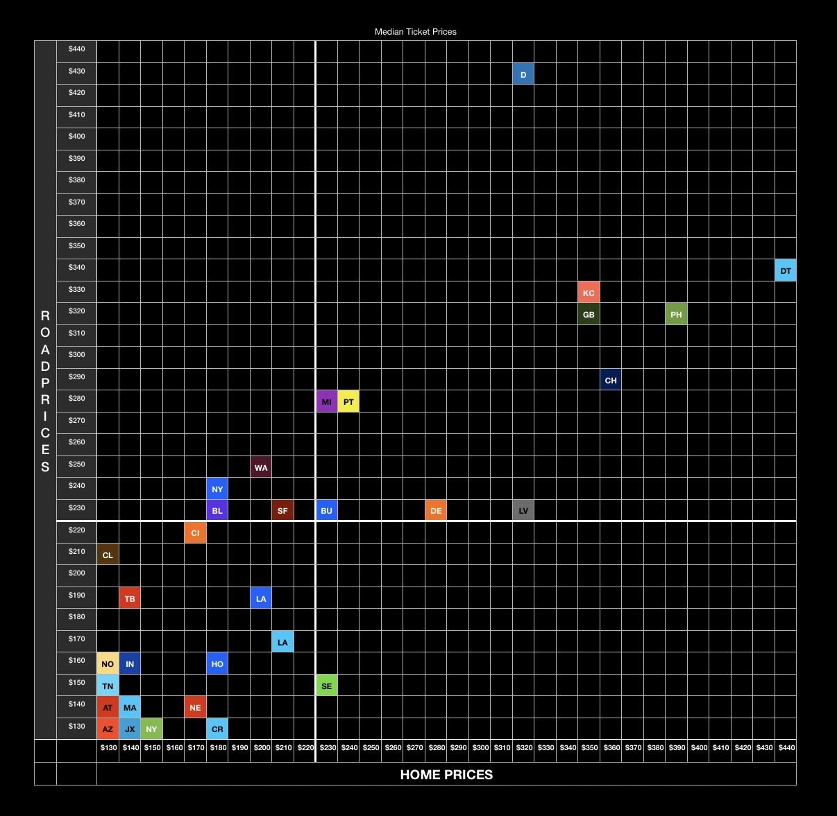 The Dallas Cowboys are typically one of the most expensive tickets on every opponents home schedule. Remember, most Cowboys fans couldn’t locate Dallas on a map if their life depended on it. That leads to tons and tons of bandwagon DC4L Cowboy fans dying to “go see their favorite team” in cities that are nowhere near Dallas. The most expensive home game for the Bears right now is vs the Cowboys. The same thing is happening for the Broncos and Raiders.