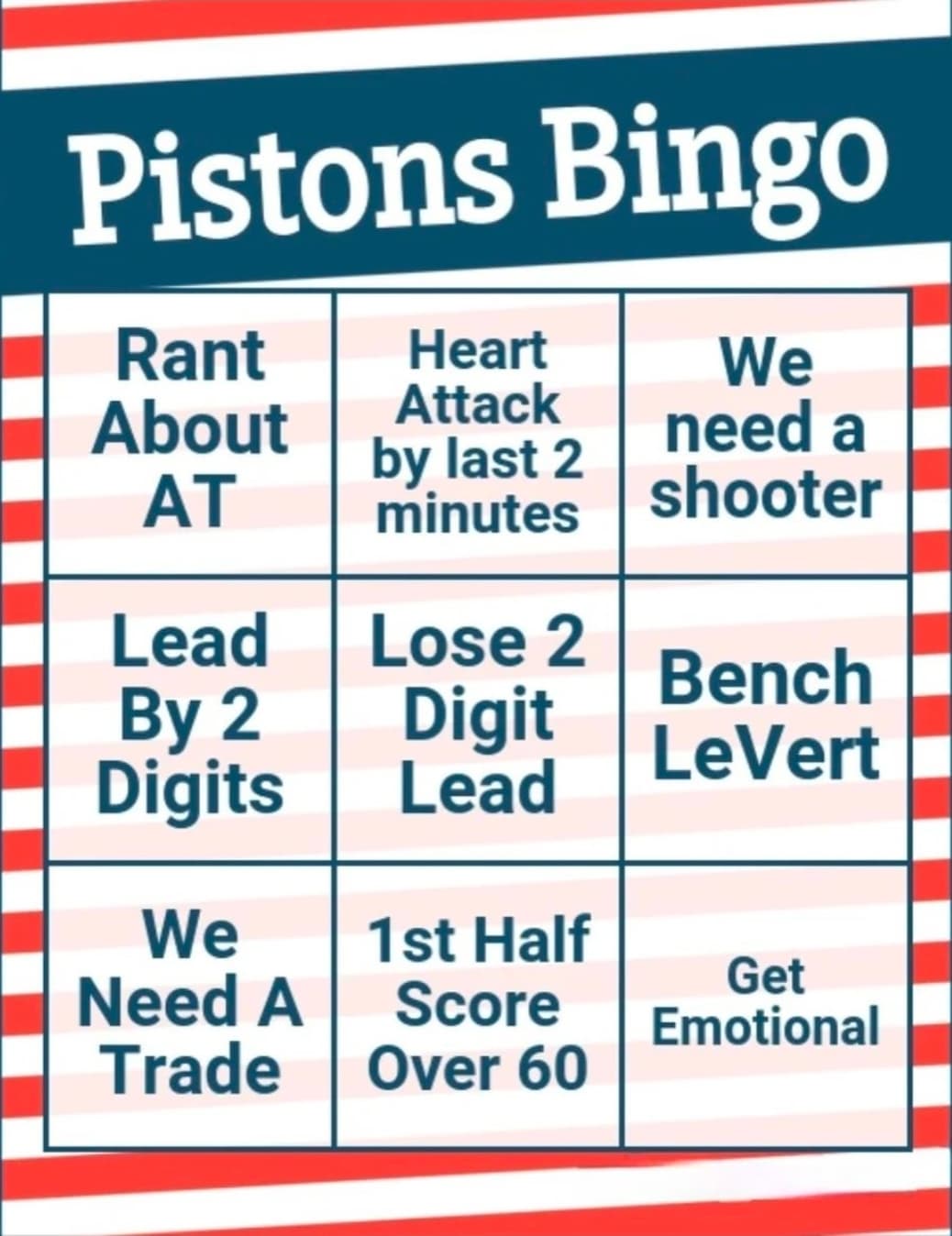 Pistons definitely took their foot off the gas. Good win and something for JB to talk about. Now……on to trading LaVert!!