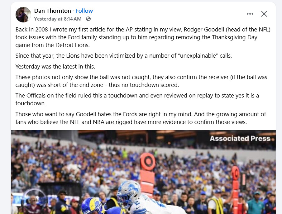 NFL influencers telling me I’m blind and ignorant. I played the game. I’ve been watching the NFL as long as I can remember. I’ve been an active Lions fan since 68. I’ve coached other sports.