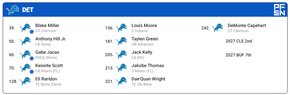 I think the Lions are really going to like CB Keith Abney II. One that I like is Daylen Everette. Somehow I think we have to get picks between our 2nd and 4th round selections. Moving down might be difficult but I think we can package some later picks to move up. A lot of talent right where we have that 3rd round void.