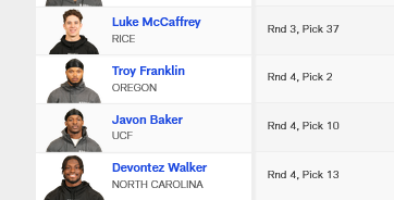 I had Walker and Baker in the same tier a little after. Malik Washington was in there too, same with McMillan and Roman Wilson.