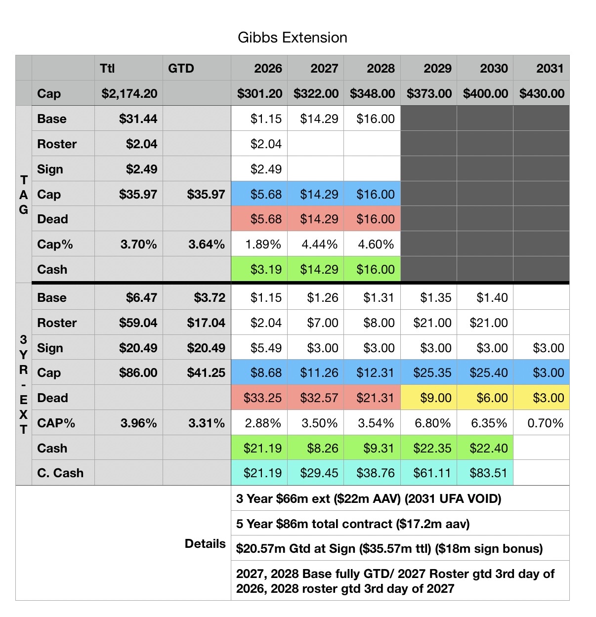 You’re right I didn’t include the fifth year option. Which really it just brings down the 29 &30 roster total slightly. Every thing else would be the same.