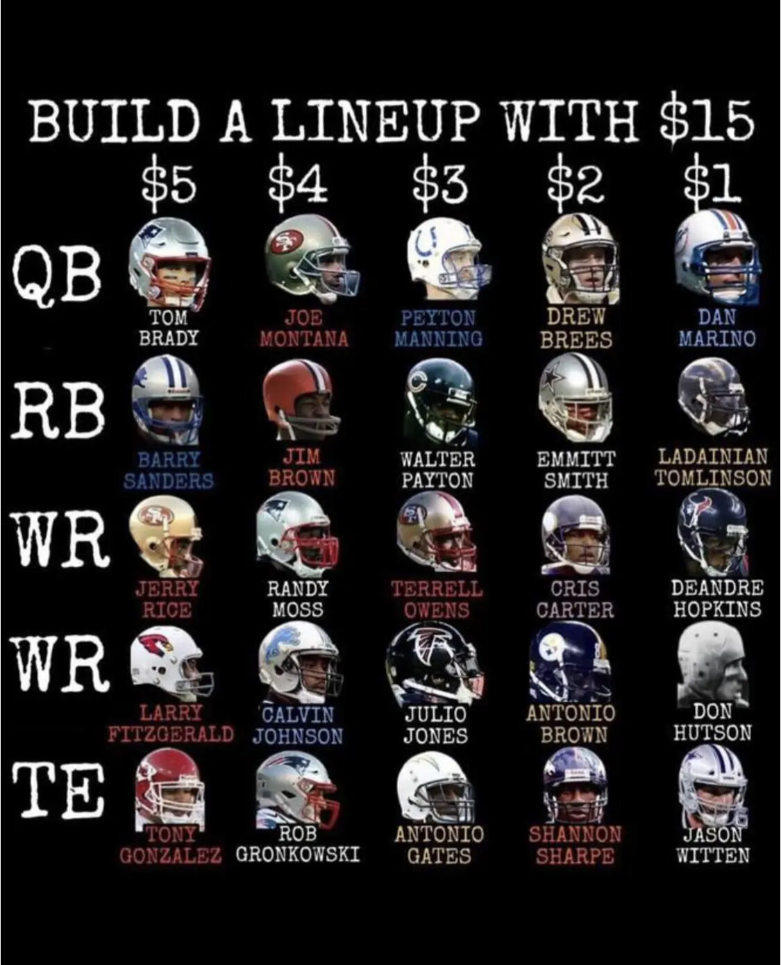 Marino, LT, Moss, Calvin, Tony G. Good luck catching that team.