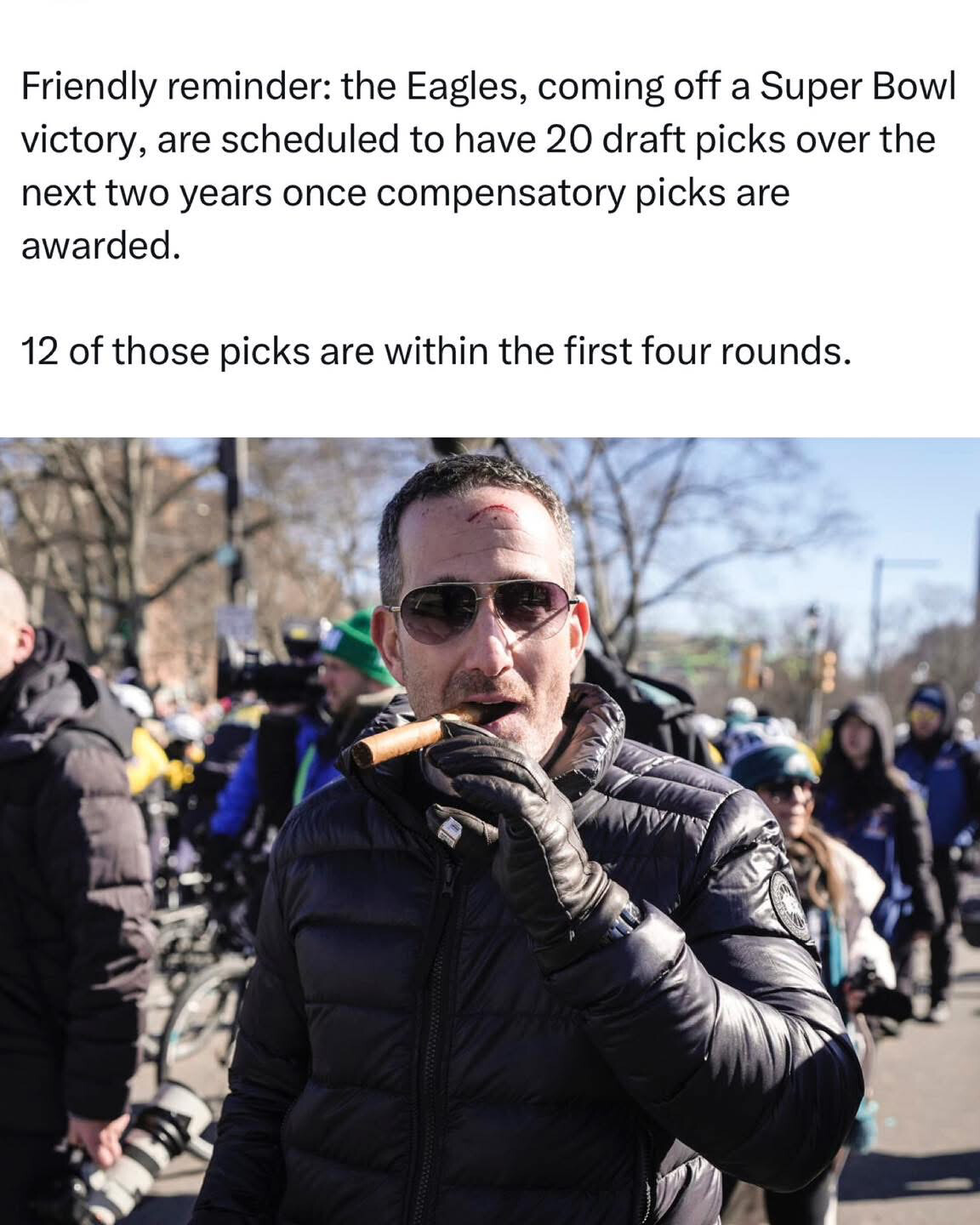 I already showed you the list of all-time comp picks, half of them were terrible franchises. And the Eagles weren’t in the top ten. They’re in a bubble right now where they’re paying their top stars and thus hemorrhaging talent they’d surely prefer to keep. We are not yet at that point of our build, but we will be soon. I expect us to have many comp picks starting a couple of years from now, provided they don’t change the rules.