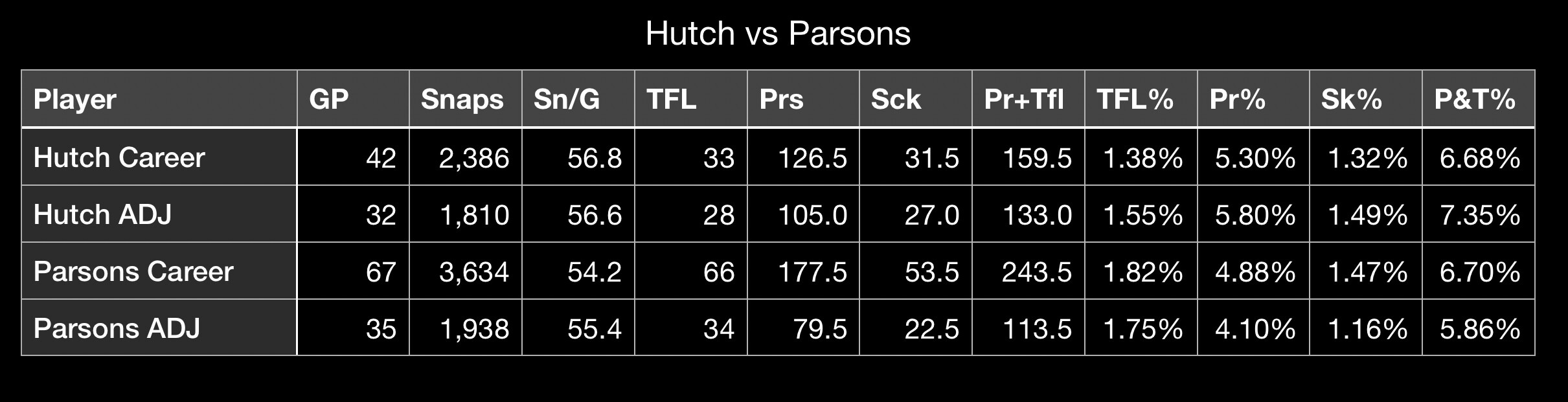 So seeing some reactions to the trade and whatnot. And i think most rational people would agree Parson and Hutch are both top tier DE in the NFL.