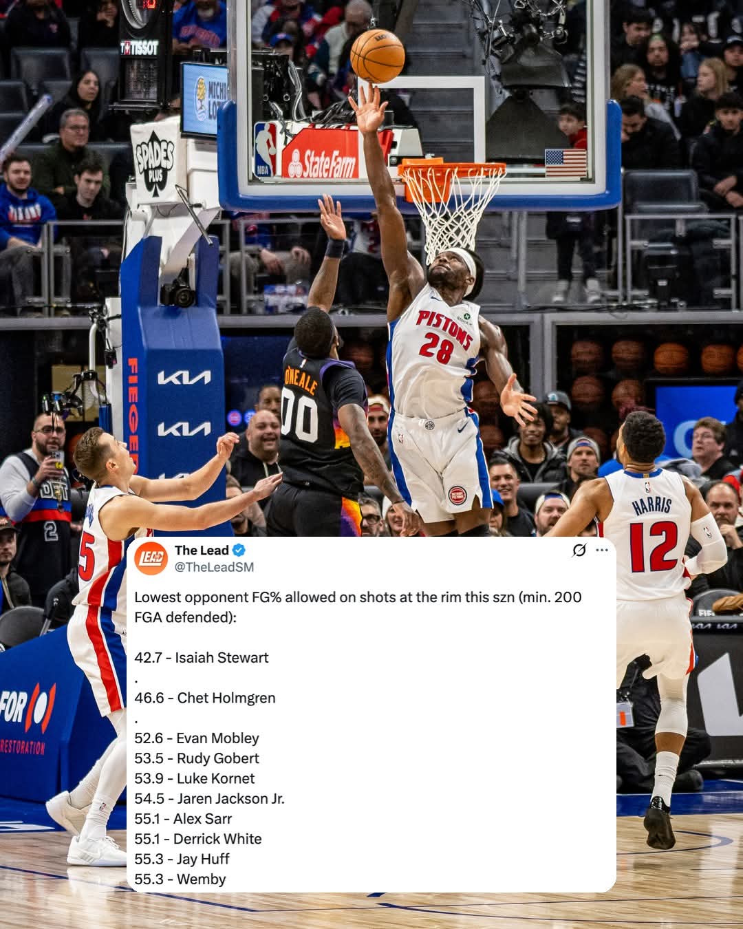 That opp FG% around the rim is damn impressive. I think guys see a 6’8" C and think no problem. Whereas with someone like Wemby, guys won’t even put up a FGA. The other thing Stew has added is a left handed block, which has helped alot.