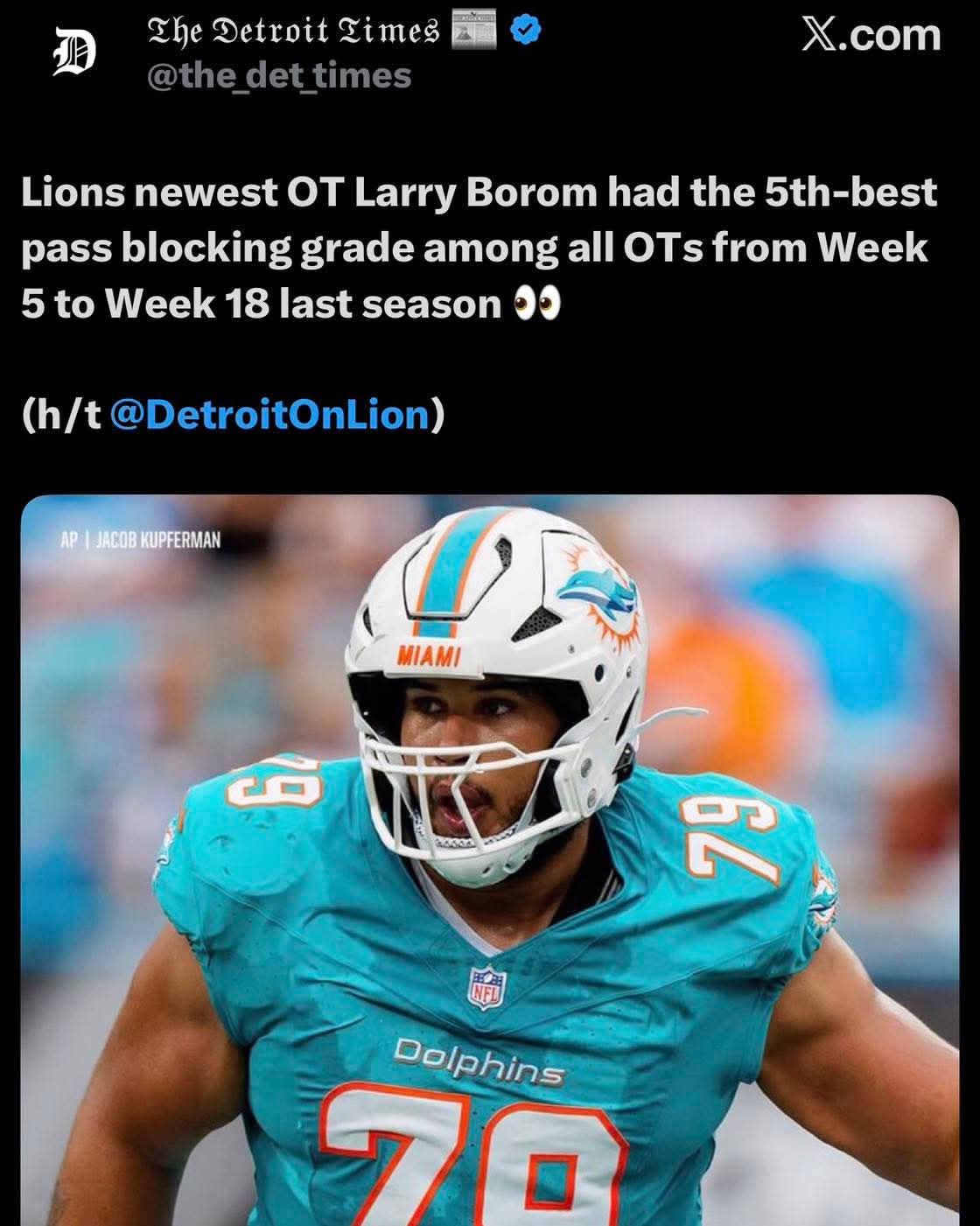 But first, add free agent DE AND DT. Then, draft our future OR starter opposite Sewell. Then get to work in the draft making this DL deeper and more talented.
