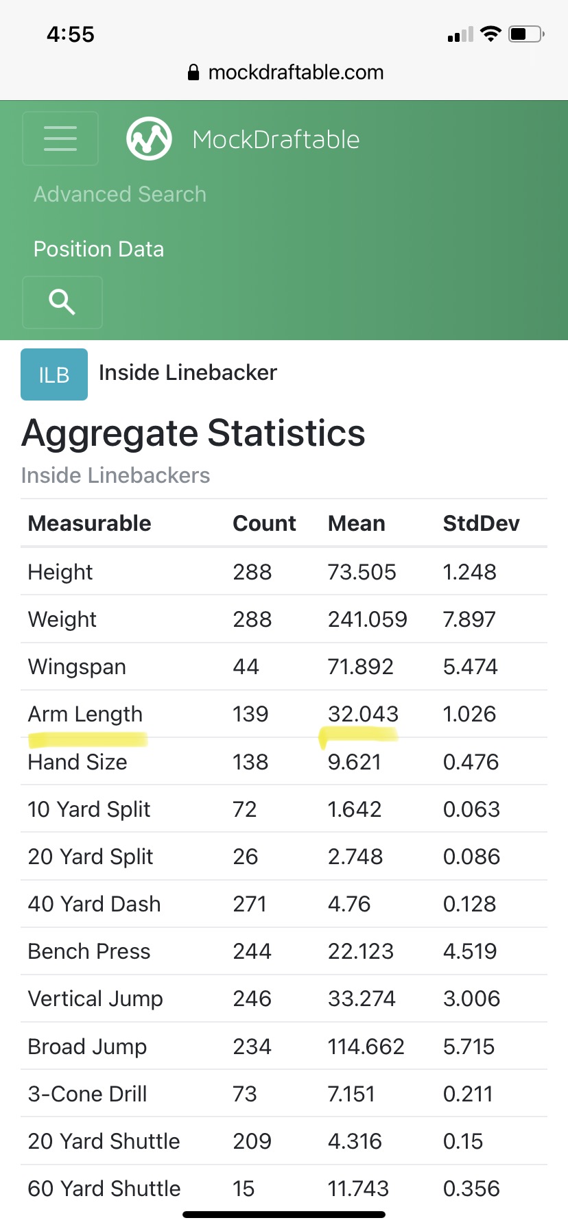 I know your trying to force a narrative that he has short arms for a LBer and this is an issue. He doesn’t have short arms and it’s not an issue for a MLB.