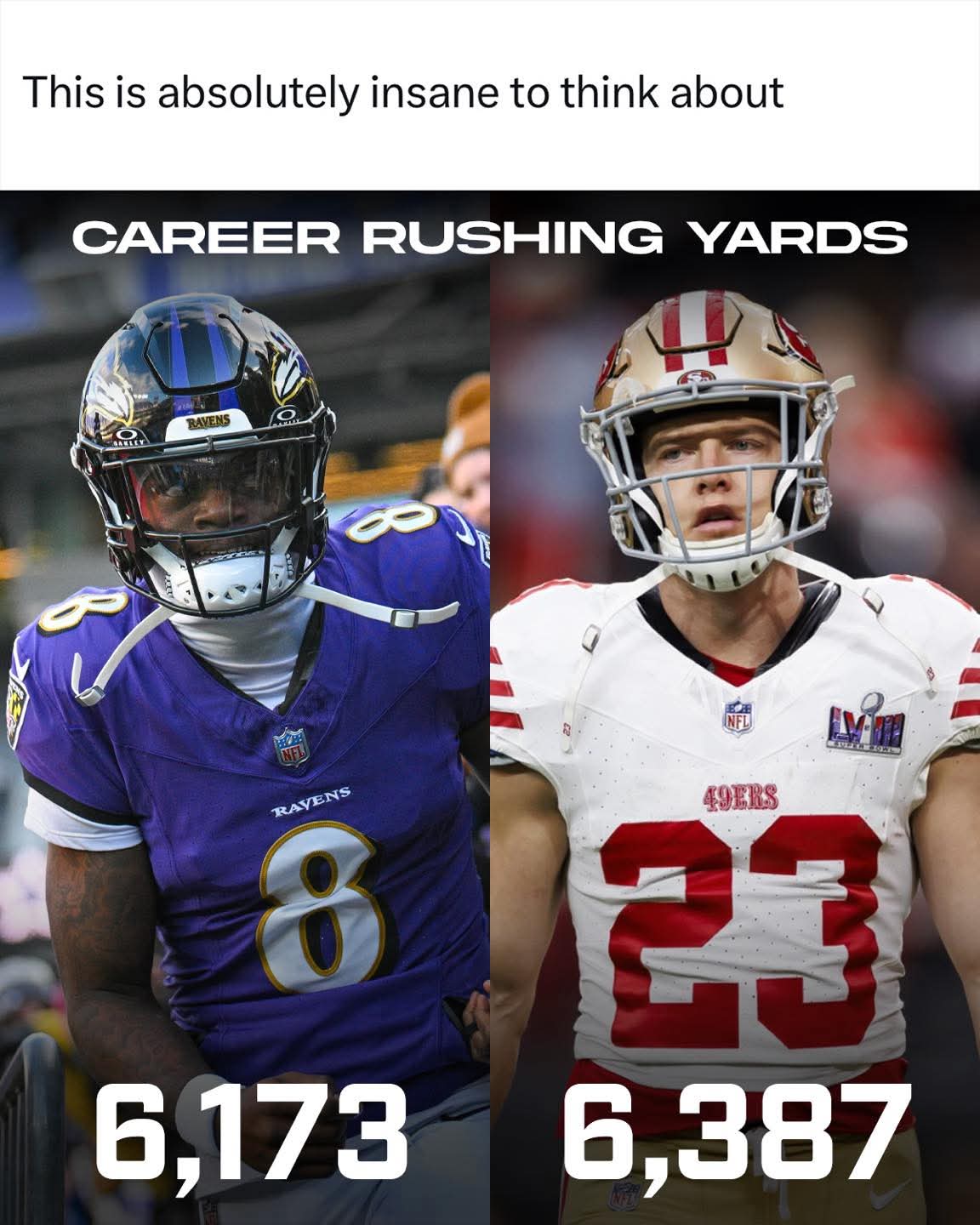 That is pretty wild. Especially considering Lamar threw for 4000 yards and 40 tds last year. Cmac does have a ton of receiving yards as well.
