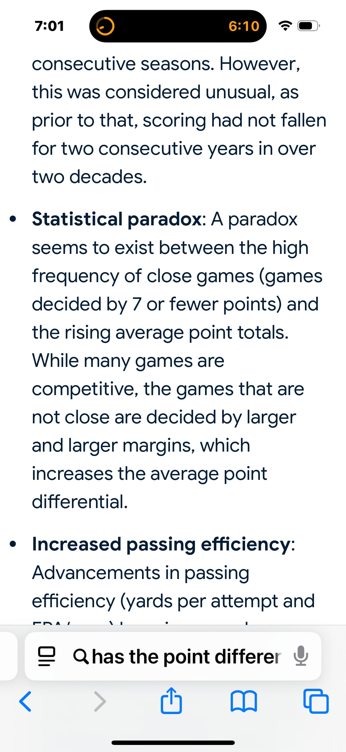 Also I kind of question the narrative that QB play is down. As I think the league has put so much on the plate of the WB now verses 20-30 years ago. The amount of passing and in game adjustments by the QB and teams is insane. Would be interesting to see the win spread by the top 10 teams and bottom 10 teams in the league over the last 30 years to see if there as been a real trend of separation be tween the good and bad teams.
