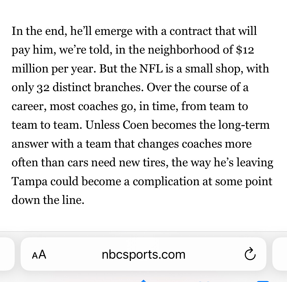 Florio even pointed out how shady the Bucs organization has been over the years with some of their coaching hires earlier in the same article!!! If the Bucs feel jilted for Coen sprinting off to a life changing jobā¦. then I say that reflects more porrly on them than it does on Coen.