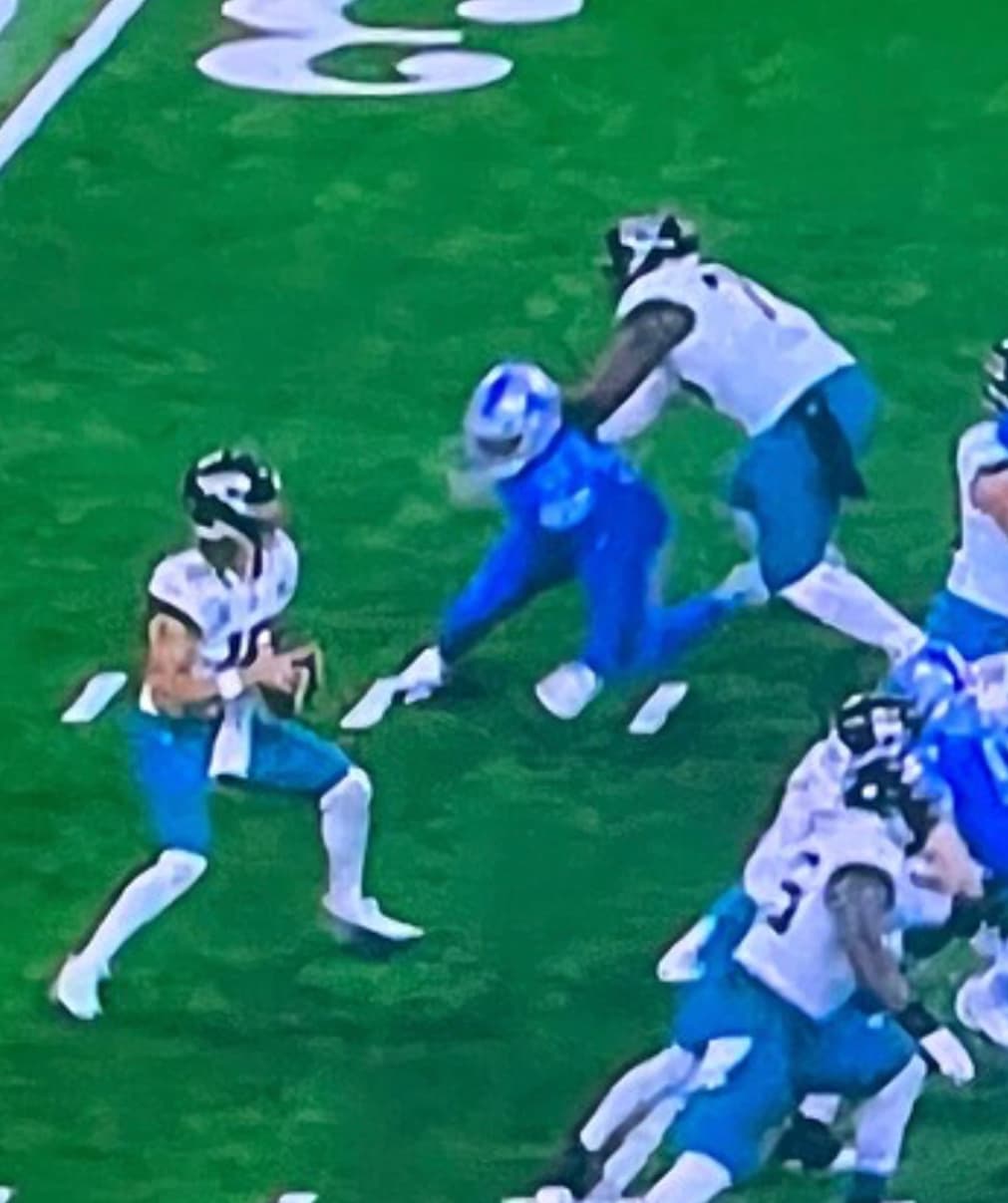 On the sack in Jax game, Hutch was blocked by 3 guys. Line Houston up against their taller OT and they will start having to have the RB chip on Houston instead of Hutch. Romeo comes back as well. Get them QB’s down !!