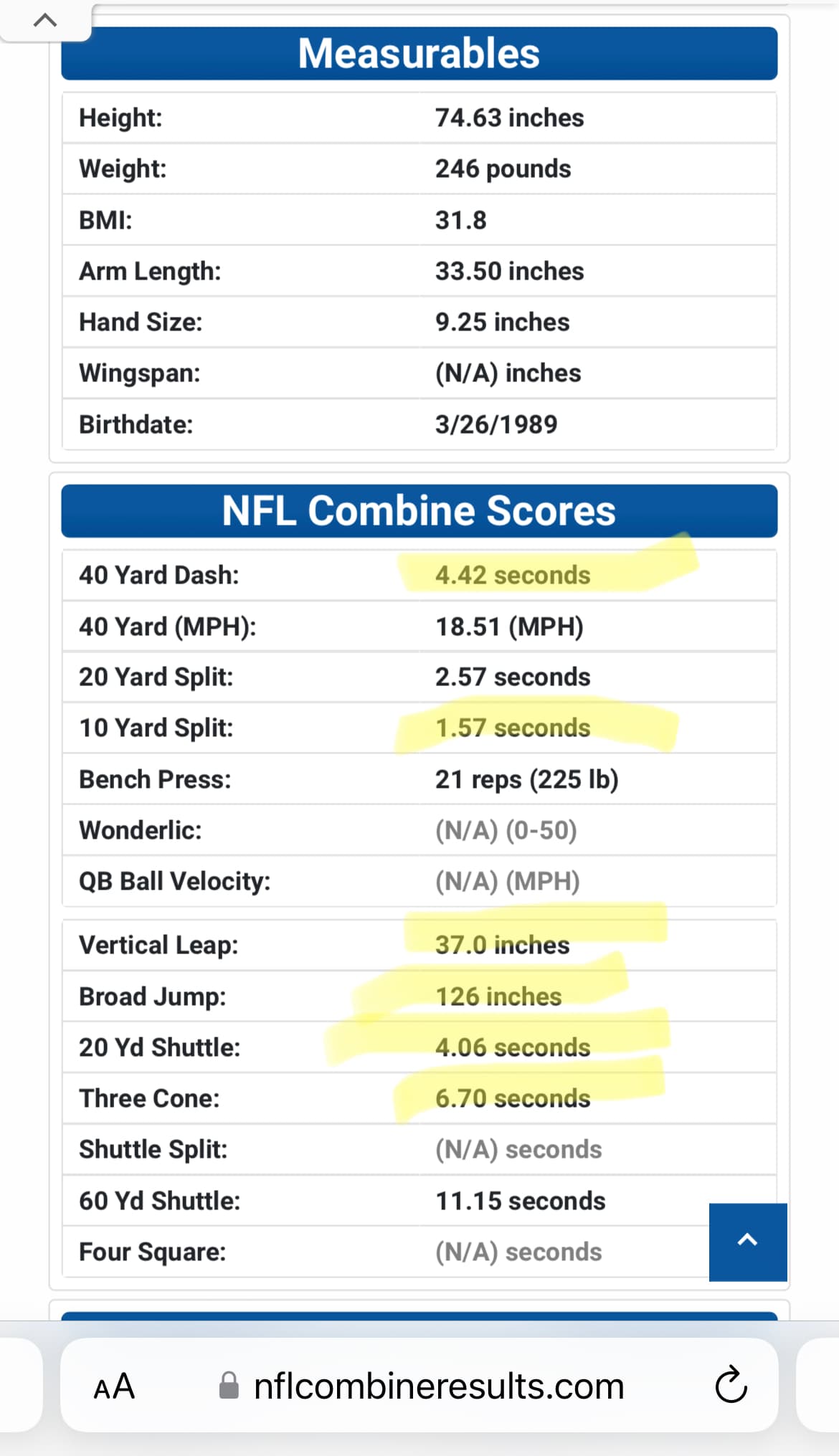 Freeney didn’t do many tests… but ran a 4.48 in the 40.