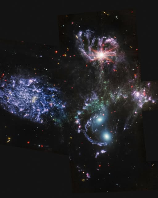 The mid-infrared instrument, a combined camera and spectrograph aboard the James Webb Space Telescope, shows never-before-seen details of Stephan’s Quintet, a visual grouping of five galaxies, providing insight into galaxy evolution in the early universe.