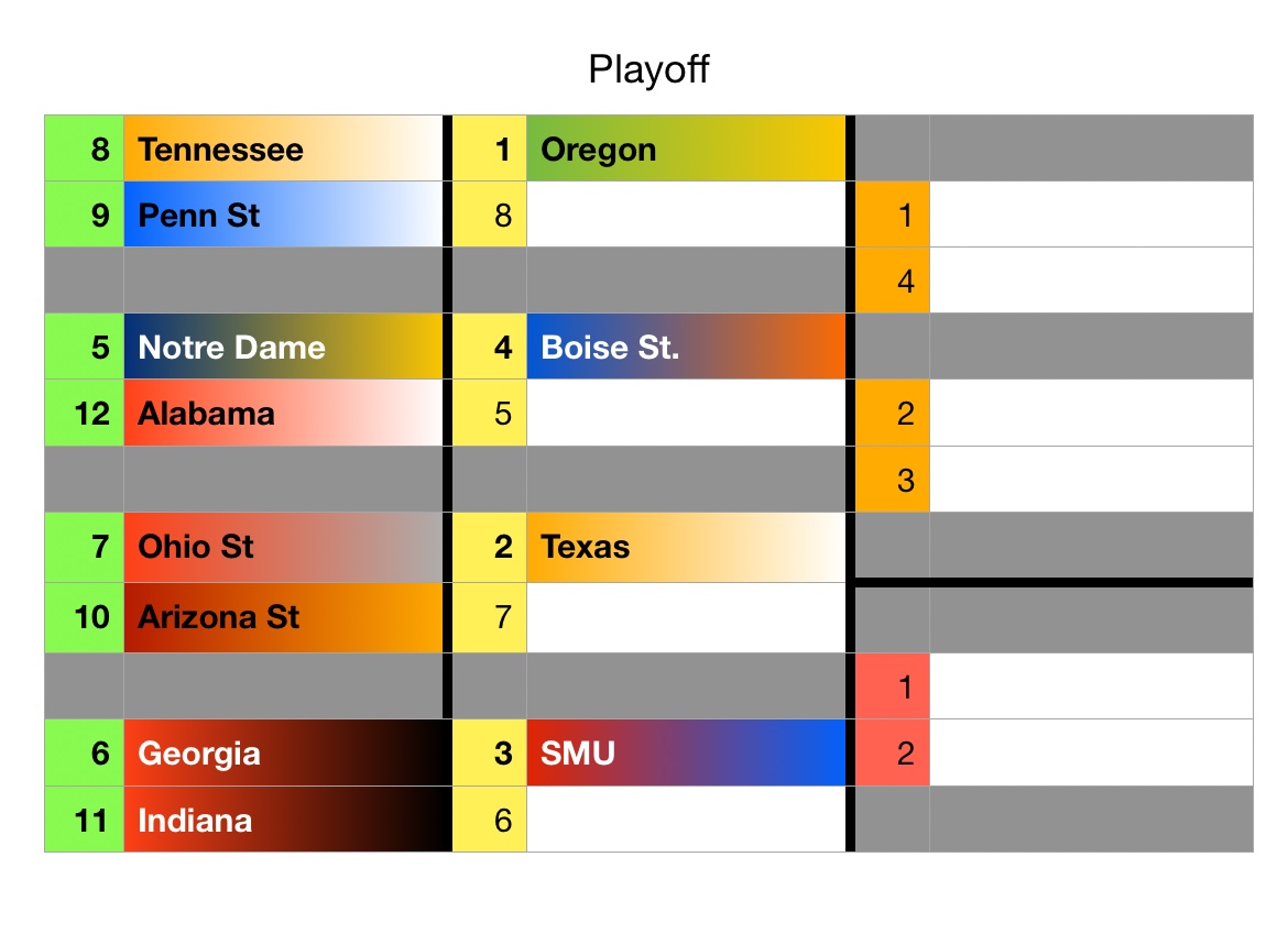 Which is another reason why i think my estimated bracket would be ideal for the CFP. Because there would be no same Conference games in the first 2 rounds excluding if Penn st wins they would play Oregon.