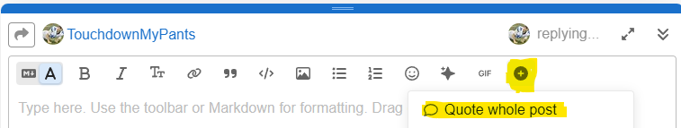 So, on mobile, that plus sign is hidden, I have to slide the toolbar to find it… Good to know tho, I appreciate it. Another downgrade, the post box now covers the whole screen… Previously it would only occupy half the screen and I could scroll up to read the thread as I was replying… Is there a fix for that too?
