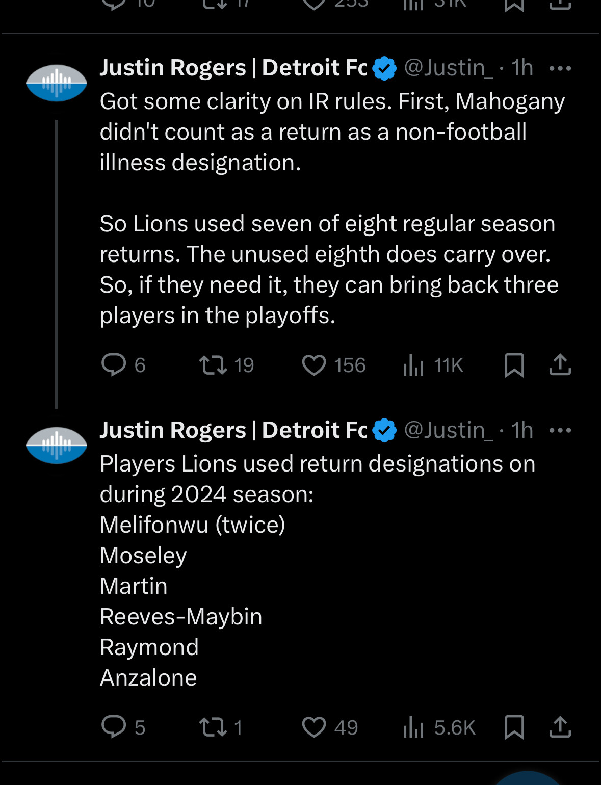 It would be amazing if Anzalone returns and inspires a defensive game in which we shut them down. I can’t wait to watch this game at Ford Field. It’s going to be an experience for sure.