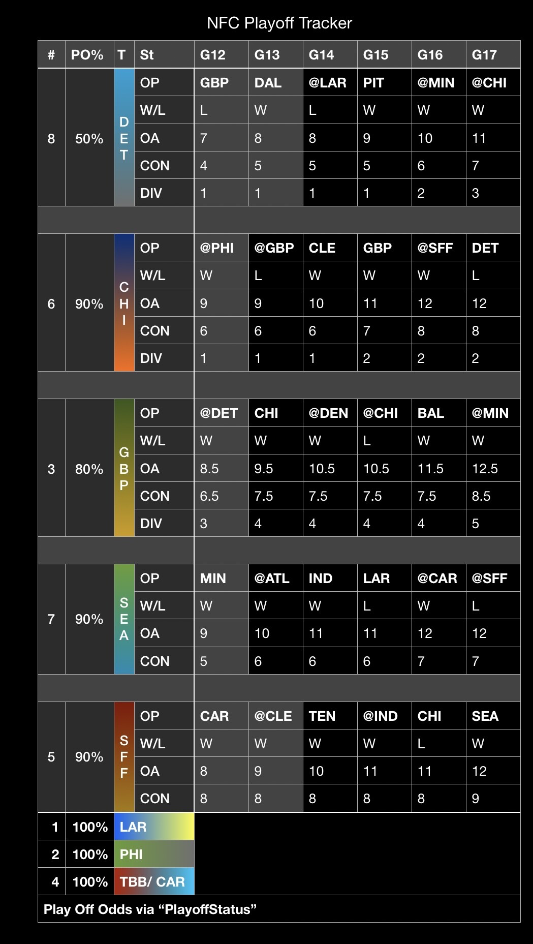 Iâm excited to see how this season ends. The Lions control their fate. Can they win this division? I think so.