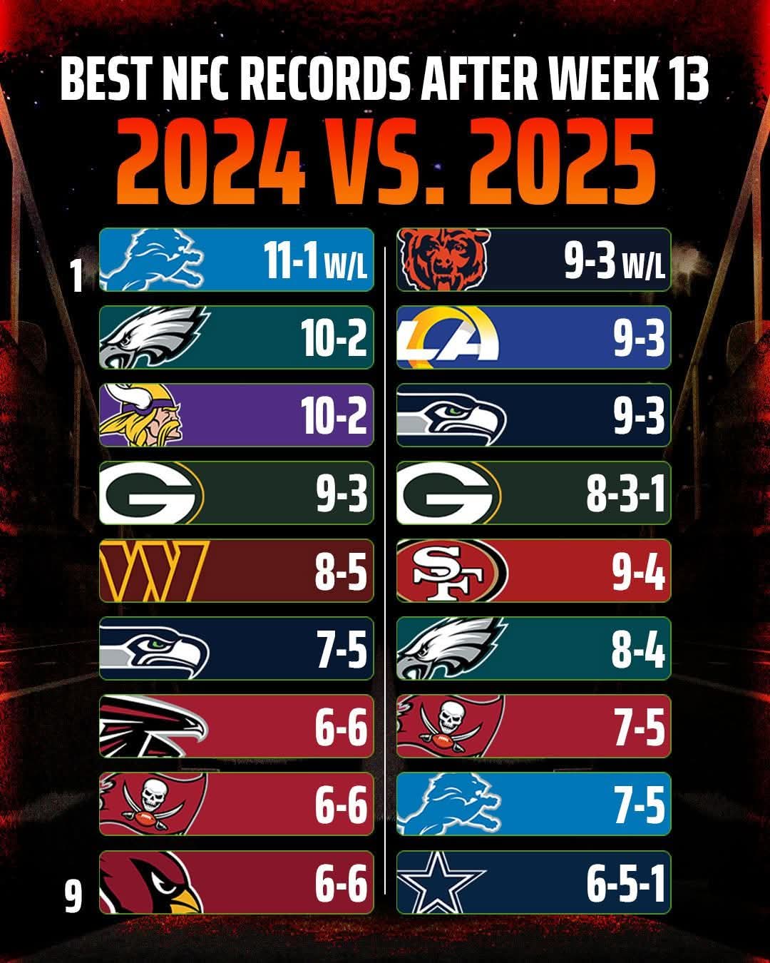 The Rams game will be tough. But possible. The Lions have seen great ball played against them all season. Now they are responding. Perfect. The Rams lost last week and played poorly. We played well. What will the trend line be after that game? 8-5, 4 games to go. 11 wins MIGHT win the division. Lots of NFC teams have tough schedules. We dealt the âBoys an almost fatal blow. Awesome. Keep swinging.