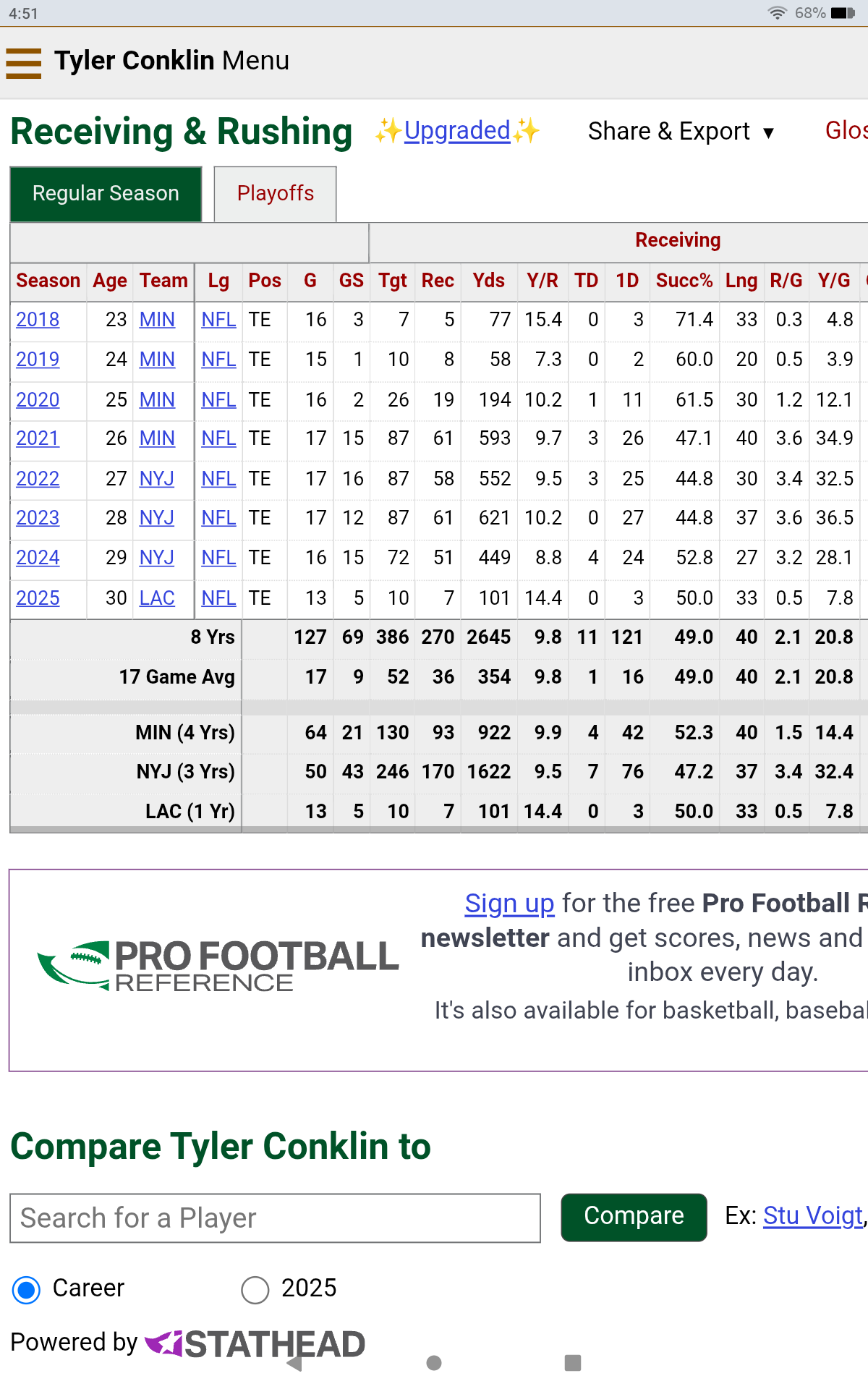Hopefully, he’s a tremendous blocker because his stats from last year are kind of meh