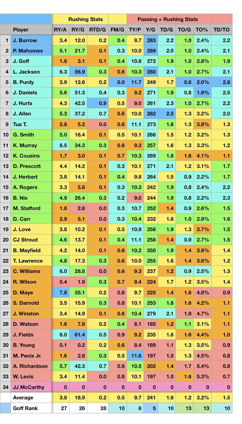Almost every key Passing category Goff is top 5.
