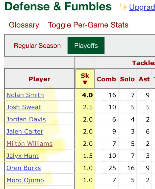 It is hard to double him all the time when he has Nolan Smith lined up next to him… and a rotation including Jordan Davis and Milton Williams to his other side.