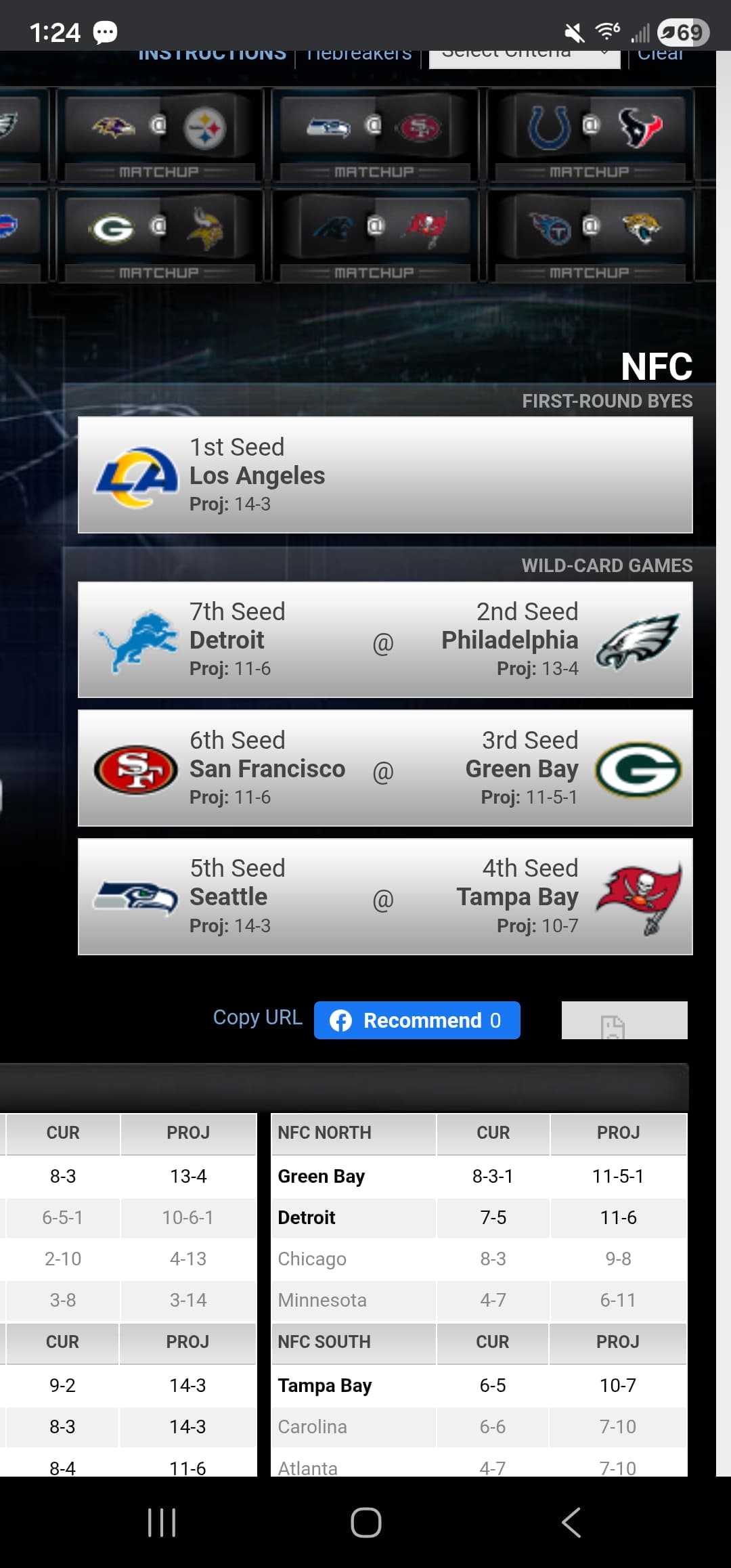 Lions have only a 3% chance to win the division, 25% to make the playoffs, they currently have Detroit Projected at 9th in NFC.