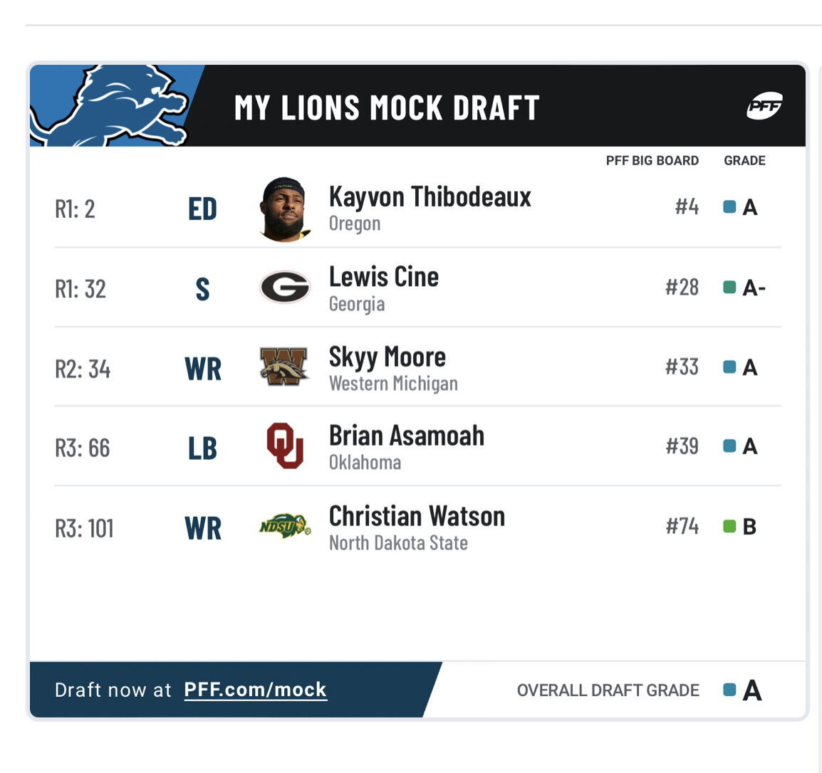 Reynolds money is a steal at this point. I feel like Walker was a fair deal as well. I have heard the Lions really like Shaun Dion Hamilton and Jalen Elliott. Coaches really like SDH…so something to keep in mind…