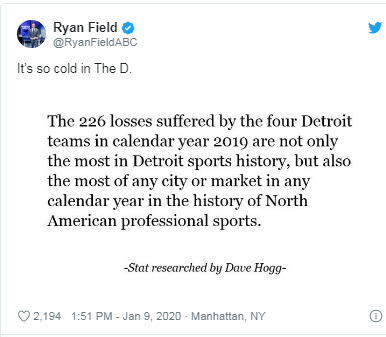 Yes. I had started a thread earlier this year – have you ever seen a worst time in Detroit sports history. Some of the board ageed – most didn’t. Glad to see some objective confirmation!! Been having to resort to college and HS this year.