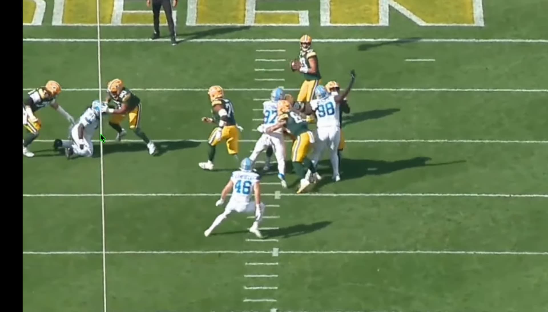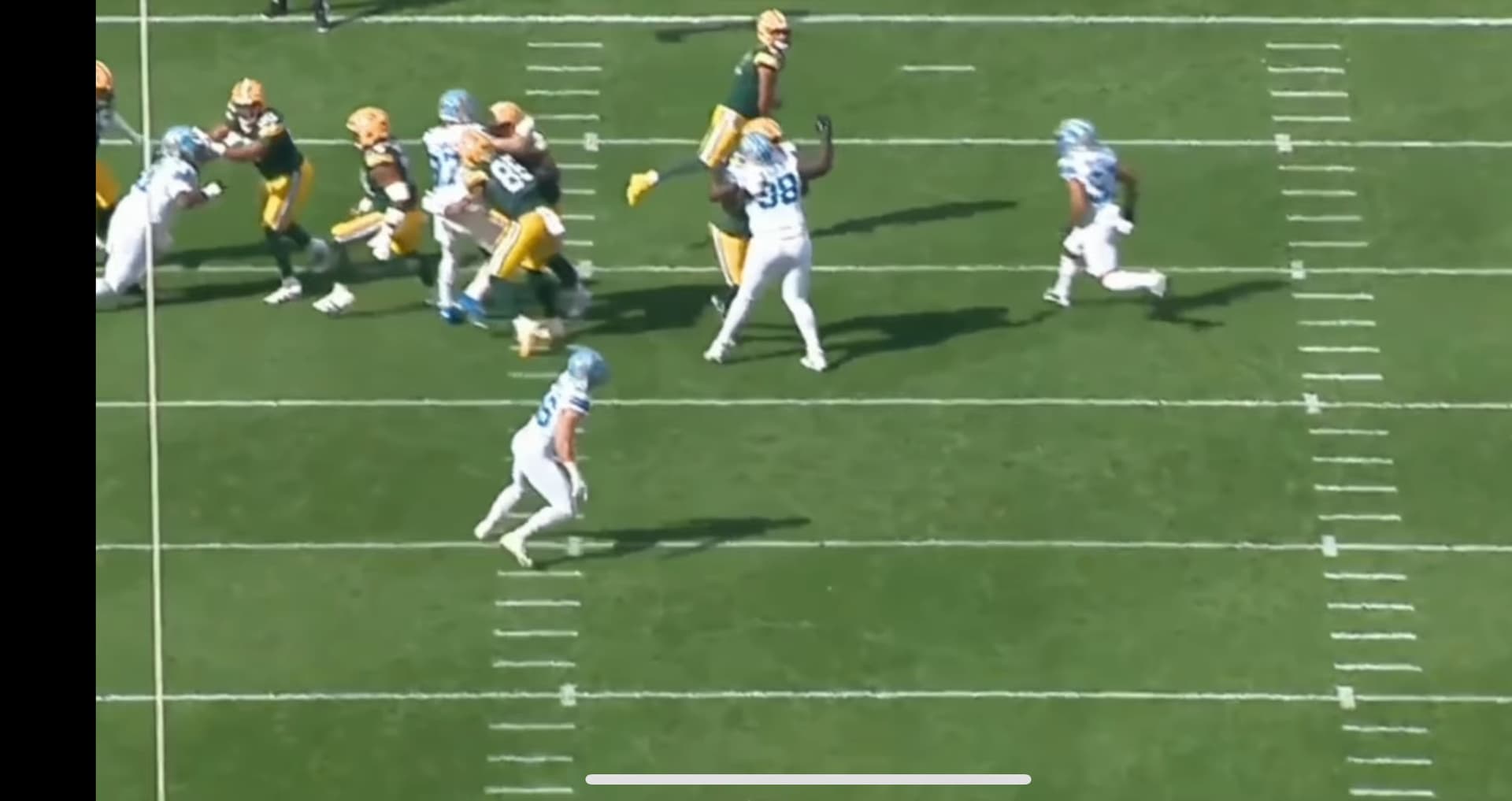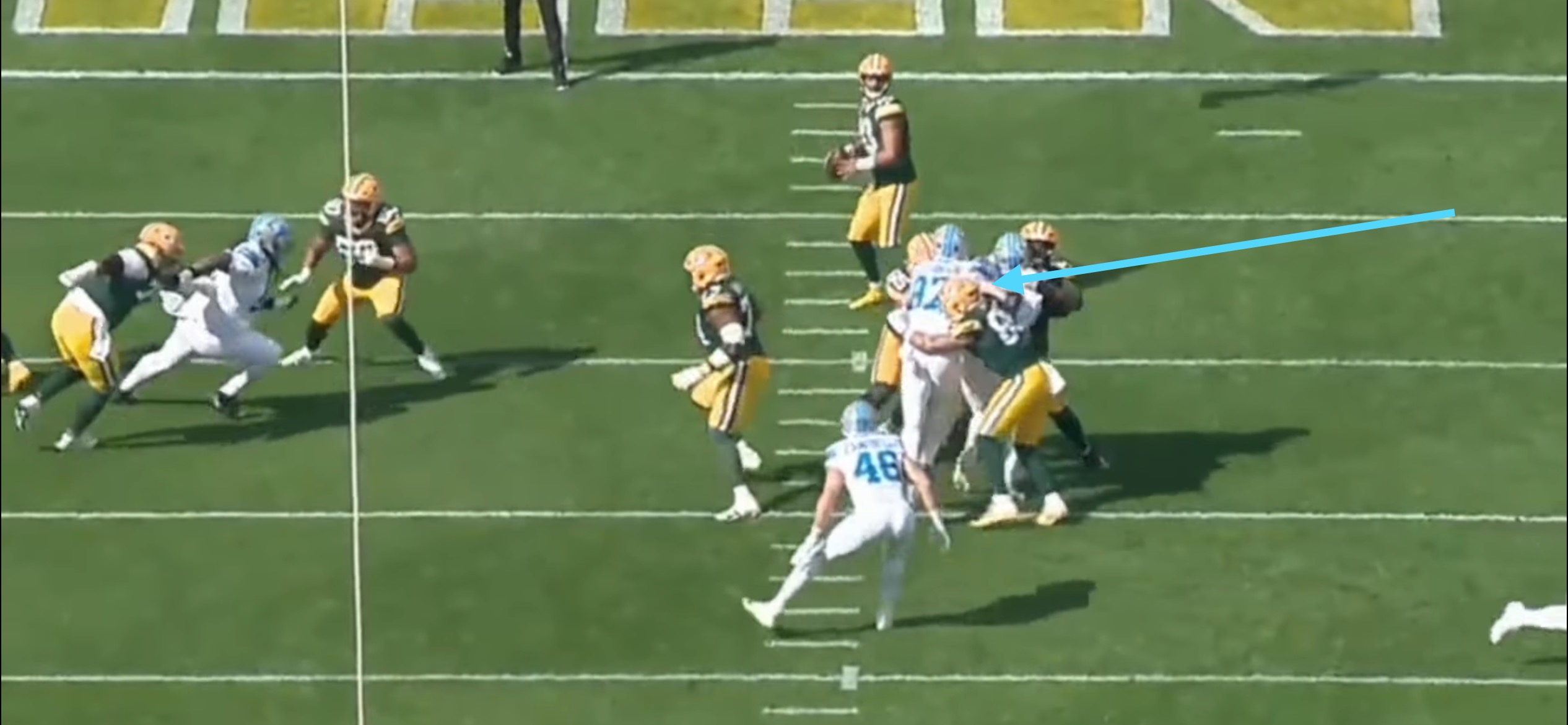 He did a push and pull and beat his guy and was pulled down by his arm ol from Green Bay grabbed his arm as he was getting by him.