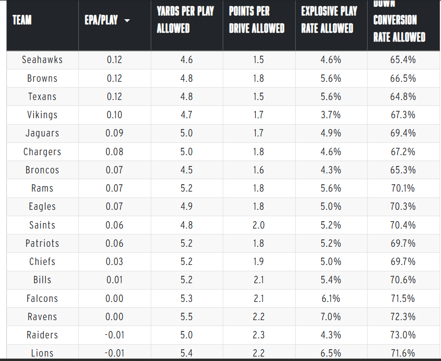 Are you sure? I’m pretty sure I remember that their DVOA was top 5 in the first half of 2025. Just looked it up – for DVOA they were 3rd ranked after week 11, 6th ranked after week 13.