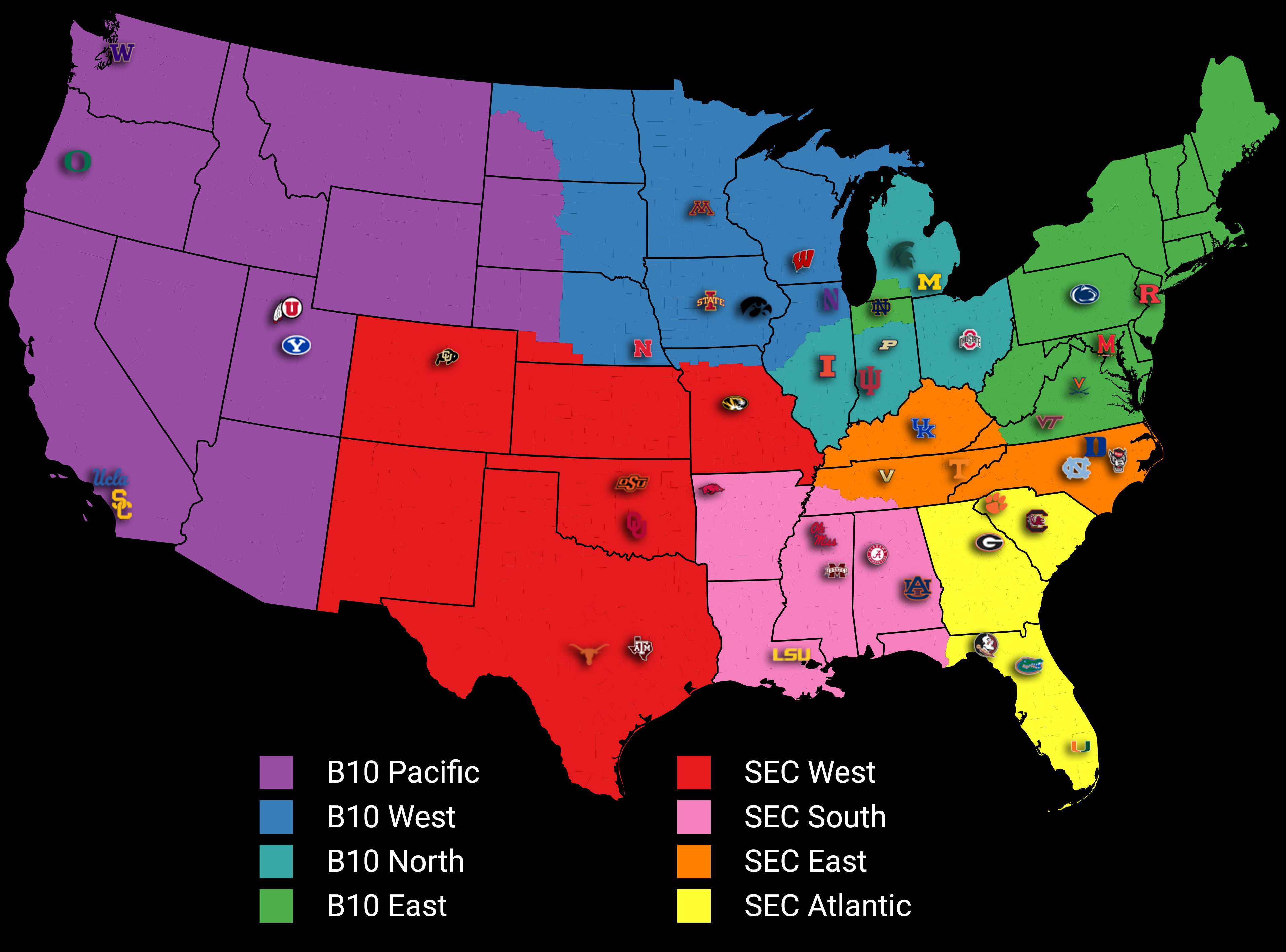 Seams like every report I hear about what the B10 and SEC talking with each other and trying to figure things out to be more competitively balanced while trying to minimize the other conferences, just furthers my thoughts and confirms all the rumors. Thats once their TV deals are done in 2030. They are going to branch off and form their own sub division.