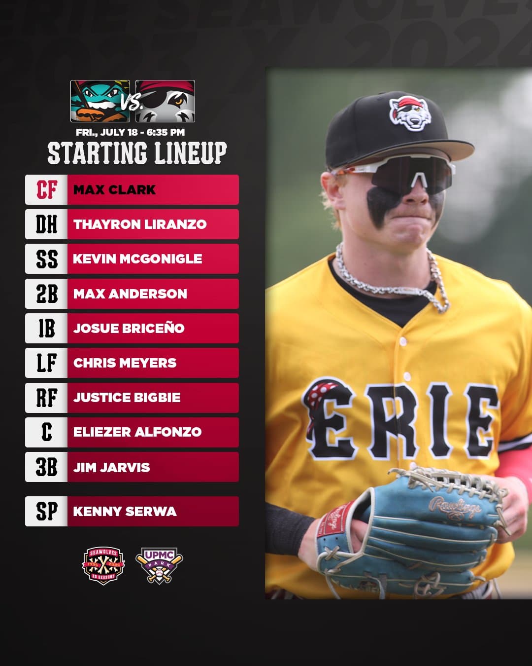 First pitch: 8:05 p.m. July 18; Globe Life Field, Arlington, Texas.