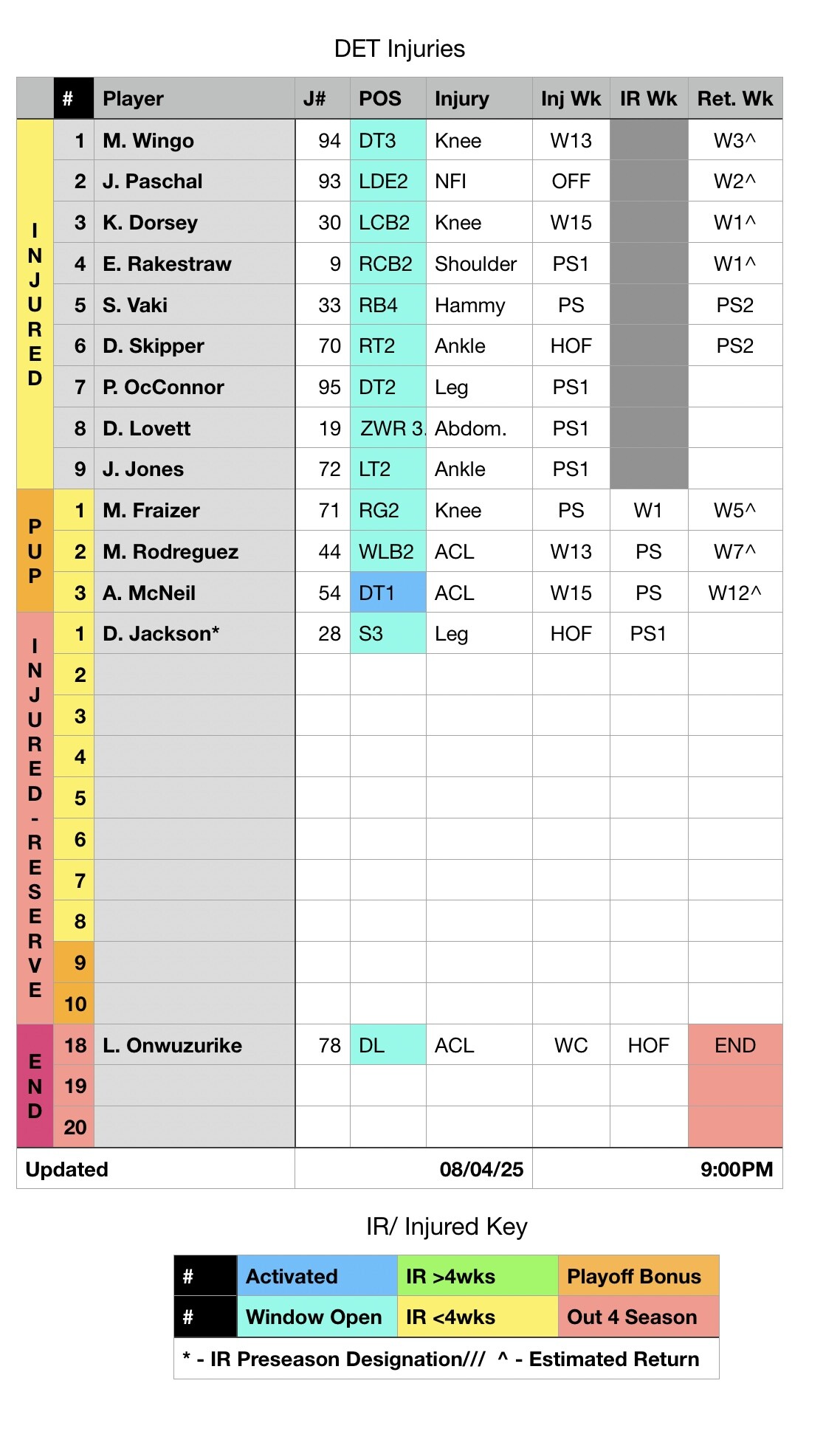 Skip and Jones are not near starter quality OT’s but the Lions could win if they had to finish a game or make a spot start.